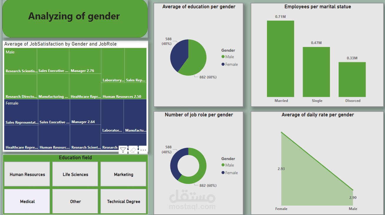 الصفحة الخامسة :تحليل لجنس الموظفين (ذكور و إناث) و مدي تأثيره علي الآداء داخل الشركة