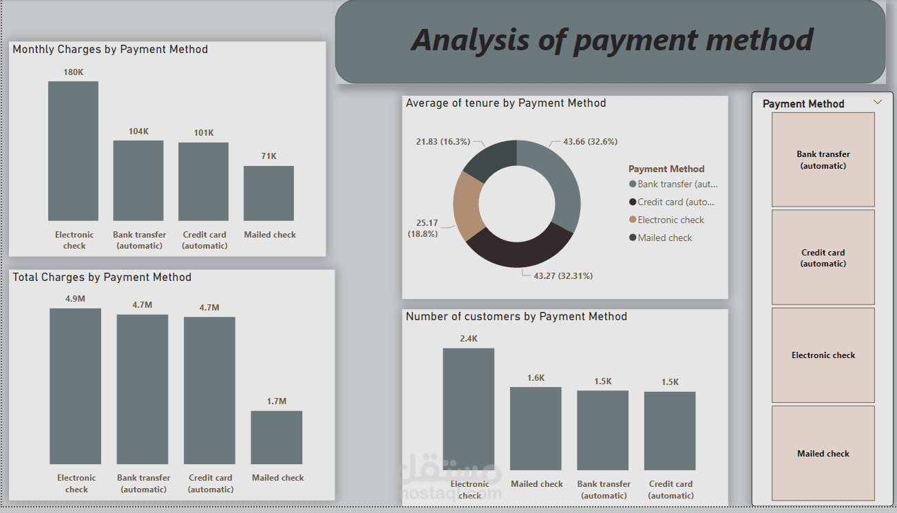 الصفحة الثالثة : وهي تحليل لطرق الدفع بناءا علي اجمالي الدخل و الدخل الشهري و عدد العملاء لكل طريقة دفع