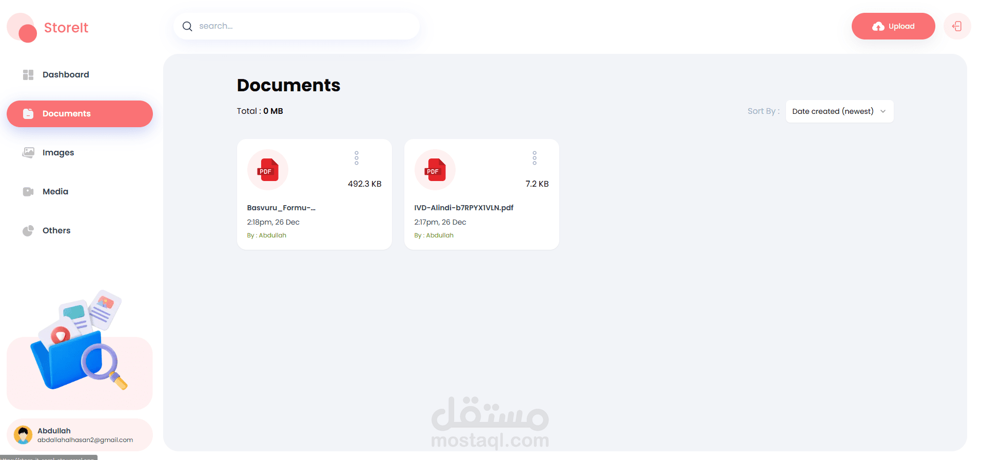 Store It هو الحل الأمثل لتخزين الملفات ومشاركتها بسهولة، حيث يجمع بين الأداء المميز والتصميم العملي بفضل استخدام Next.js.