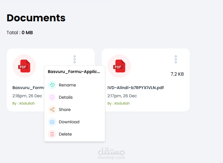 إمكانية رفع الملفات باستخدام سحب وإفلات أو تحديدها من الجهاز.