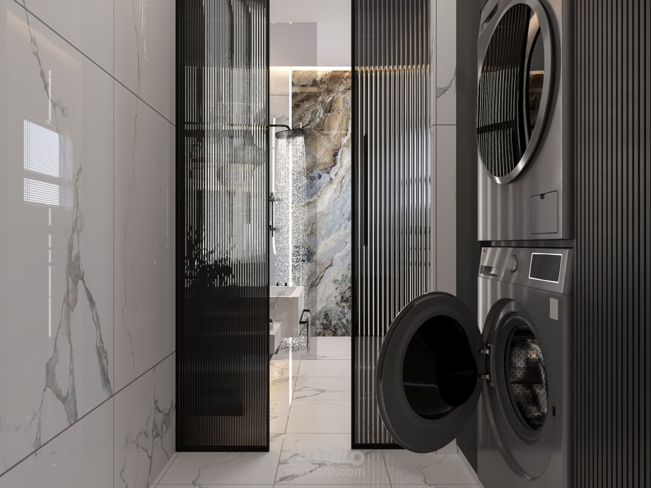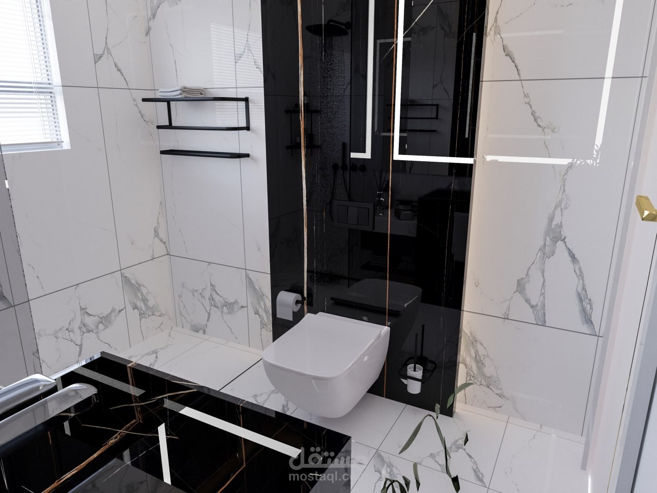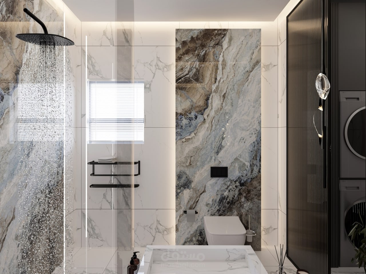 حمام رئيسي لأحد الفلل قمت بتصميمه بعد دراسة عدة نقاط