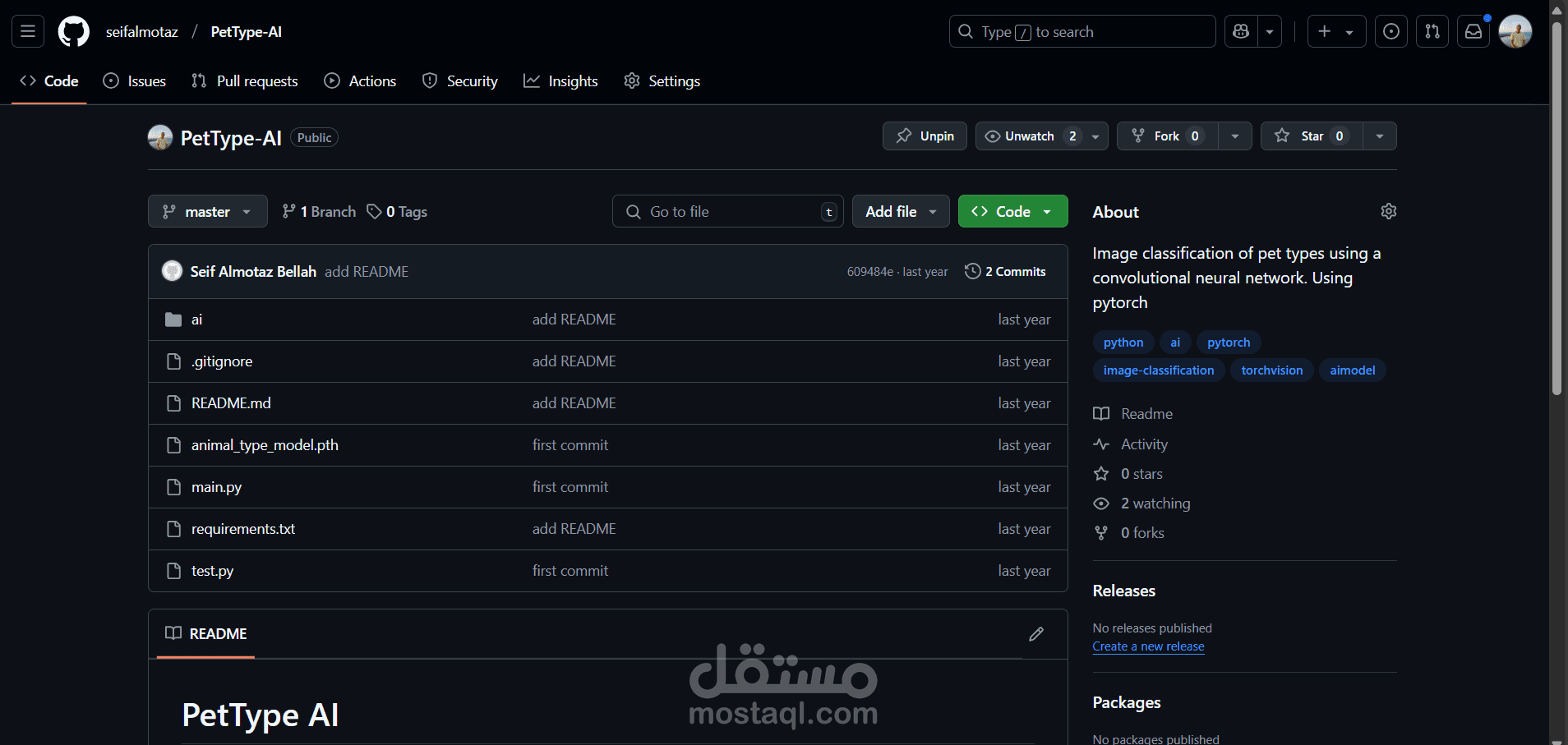 مشروع لتصنيف أنواع الحيوانات الأليفة باستخدام الشبكات العصبية الالتفافية (Convolutional Neural Network). يعتمد المشروع على تقنيات تعلم الآلة والذكاء الاصطناعي لتحليل الصور وتصنيفها بدقة عالية. سيتم استخدام مكتبات متخصصة مثل PyTorch وTorchvision للتعامل مع النماذج والتدريب، بالإضافة إلى مكتبة Pillow لمعالجة الصور، ومكتبة Numpy لإدارة البيانات والمعالجة العددية. يهدف المشروع إلى تقديم نموذج فعال ودقيق يمكنه التعرف على أنواع الحيوانات الأليفة من الصور بشكل موثوق، مع إمكانية استخدامه في تطبيقات عملية مثل تطبيقات الهواتف المحمولة أو المواقع الإلكترونية التي تتعلق برعاية الحيوانات.
