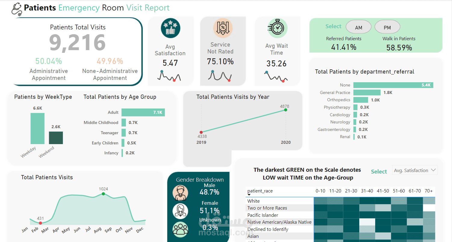 تم تصميم هذا المشروع باستخدام Power BI لتحليل وعرض تقارير غرفة الطوارئ بشكل تفاعلي ودقيق. يهدف المشروع إلى تقديم رؤية شاملة لحالات الطوارئ اليومية من حيث عدد المرضى، الأوقات المختلفة للانتظار، وأنماط الحالات الأكثر شيوعًا. باستخدام Power BI، تم دمج بيانات متعددة من مصادر مختلفة مثل سجلات المرضى والمواعيد وتفاصيل المعالجة لتحسين إدارة الوقت والموارد. يوفر التقرير رؤى مفيدة لفريق الرعاية الصحية لاتخاذ قرارات مبنية على البيانات لتحسين الكفاءة وتقديم الرعاية بشكل أسرع وأفضل.
