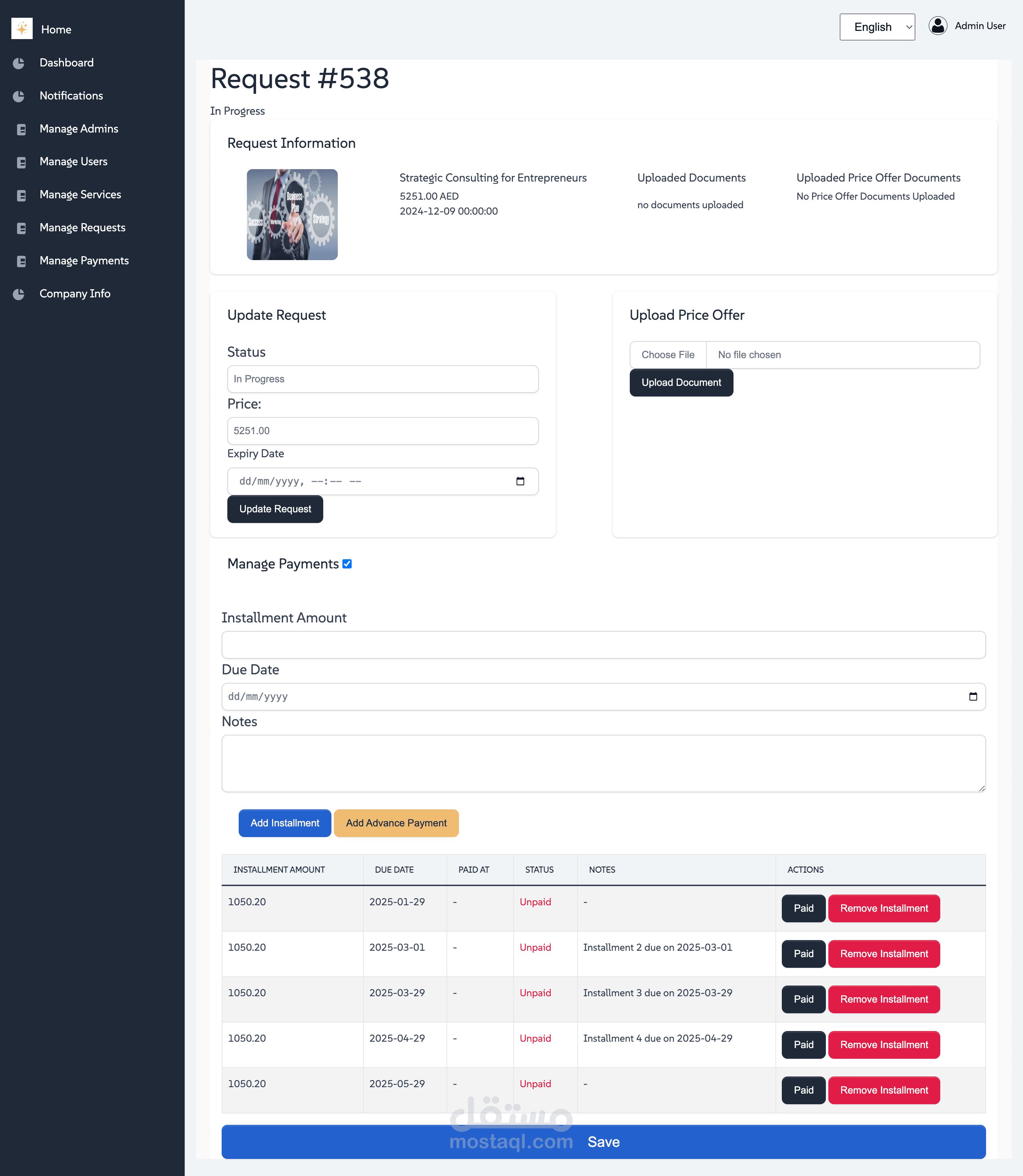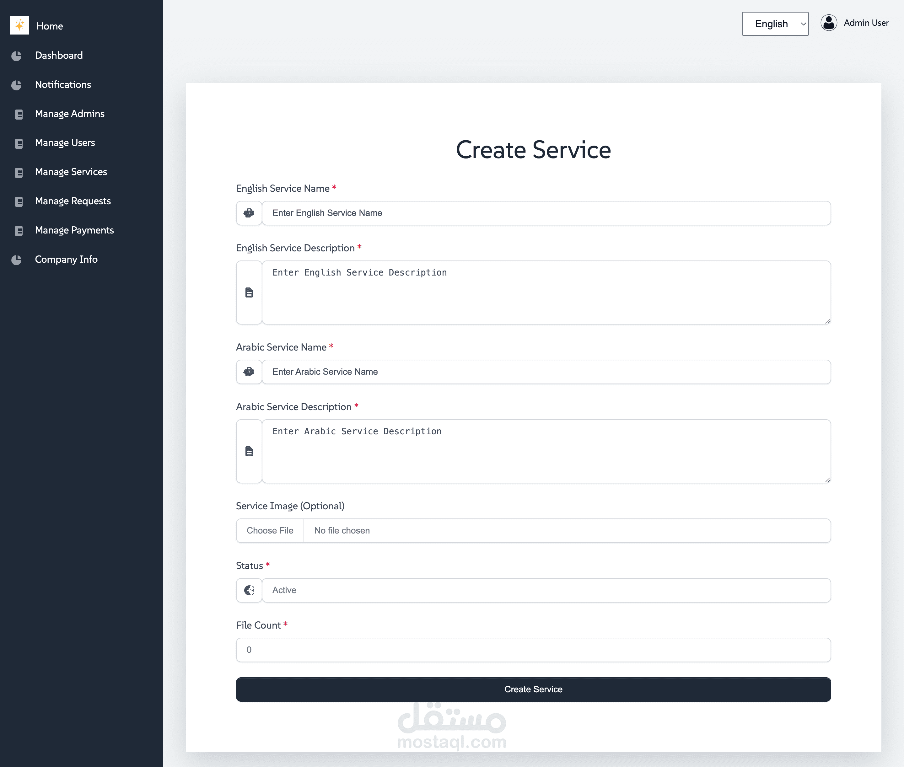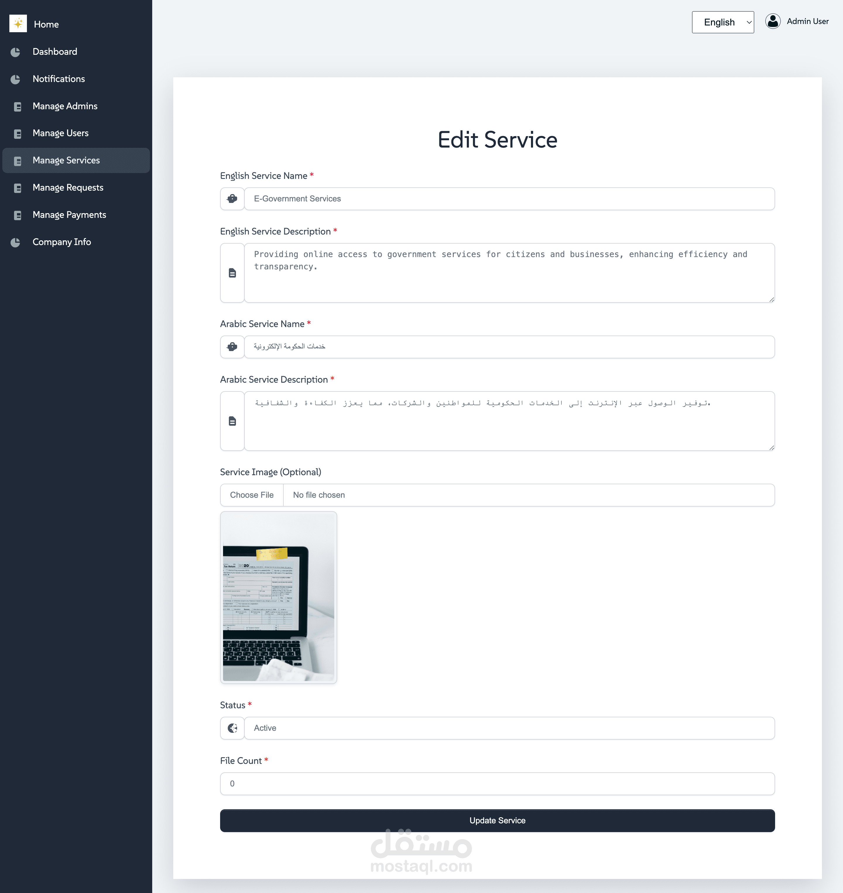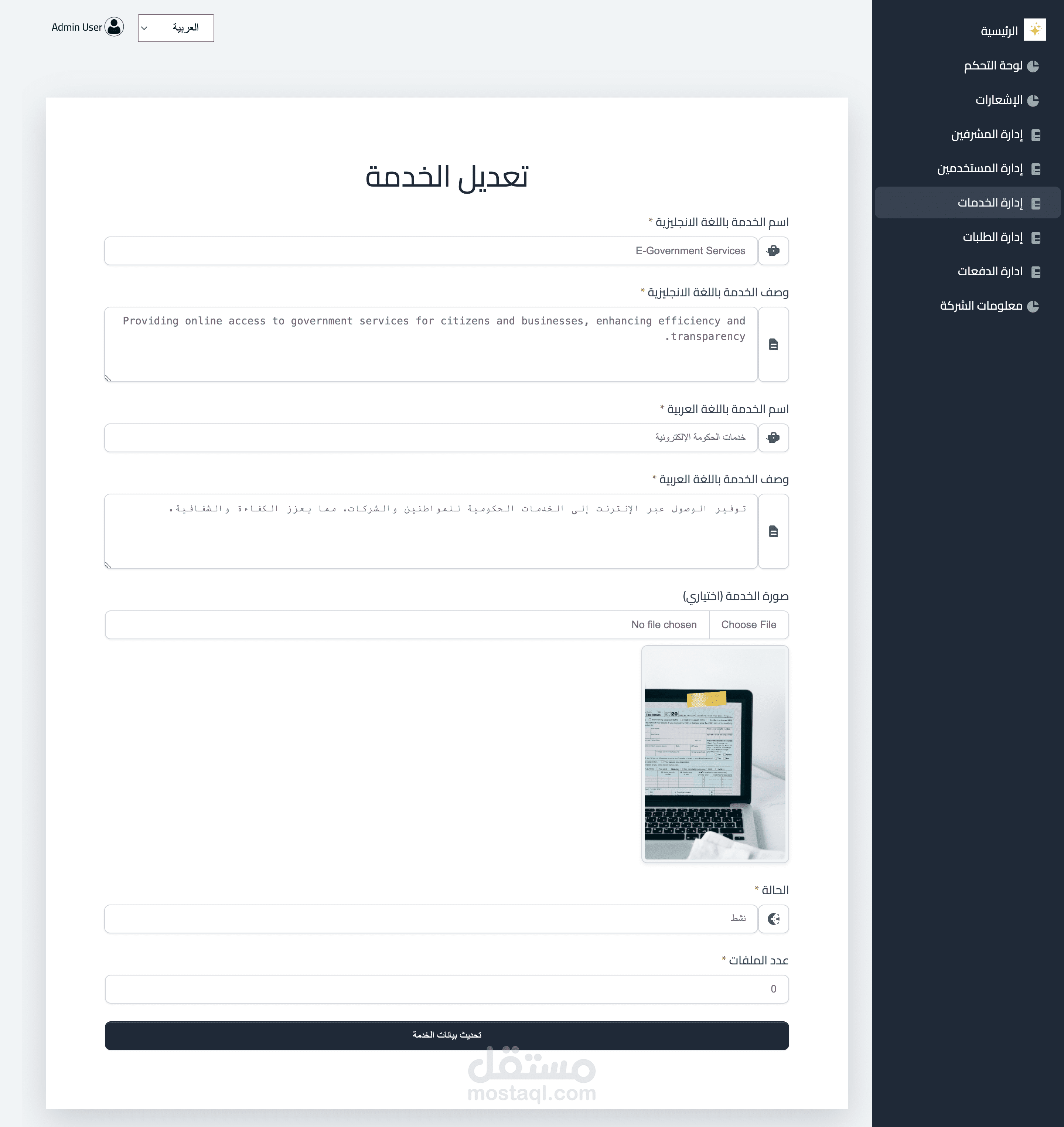 إضافة وتعديل وحذف الخدمات المقدمة.