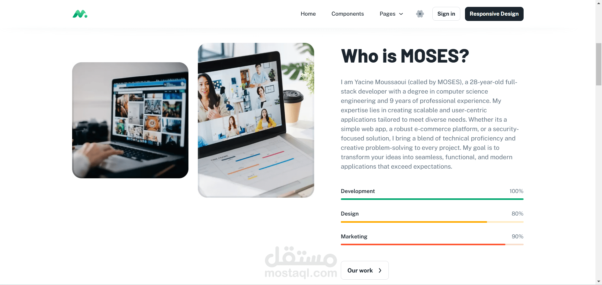 مطور ويب محترف، قمت بتطوير موقع متكامل باستخدام Material UI/Google وأحدث تقنيات واجهات المستخدم (UI) باستخدام Next.js. يتميز الموقع بإمكانية تخصيص اللون العام، دعم الوضع الداكن (Dark Mode)، وتصميم متجاوب بالكامل لجميع الأجهزة. يحتوي الموقع على صفحات وواجهة إدارة (Dashboard) جاهزة، مطورة باحترافية لتلبية احتياجات مجموعة متنوعة من المجالات الشائعة، ومنها: