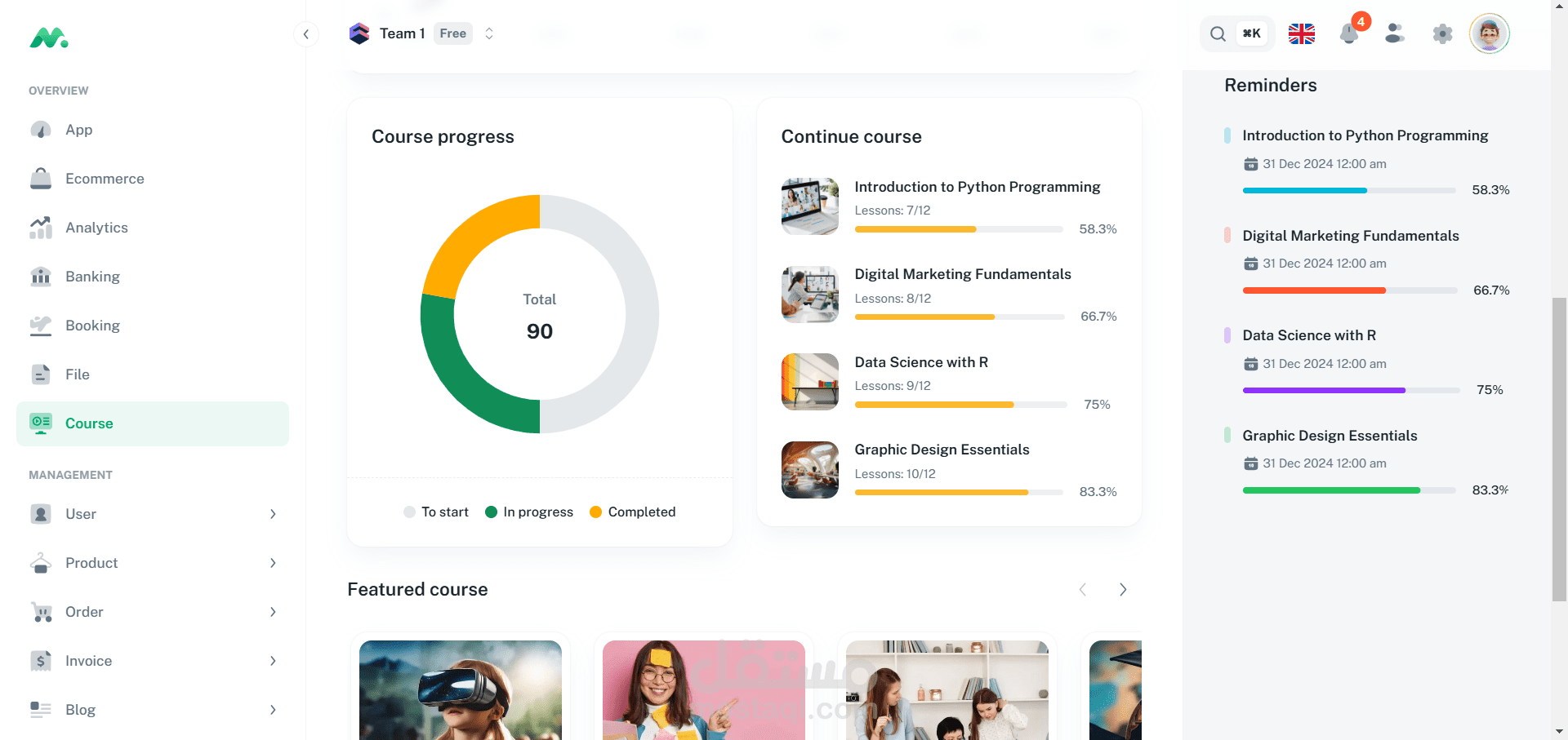 نظام إدارة منصات التعليم: موقع مهيأ لبيع الدورات وإدارة العملية التعليمية بين الأساتذة والطلاب.