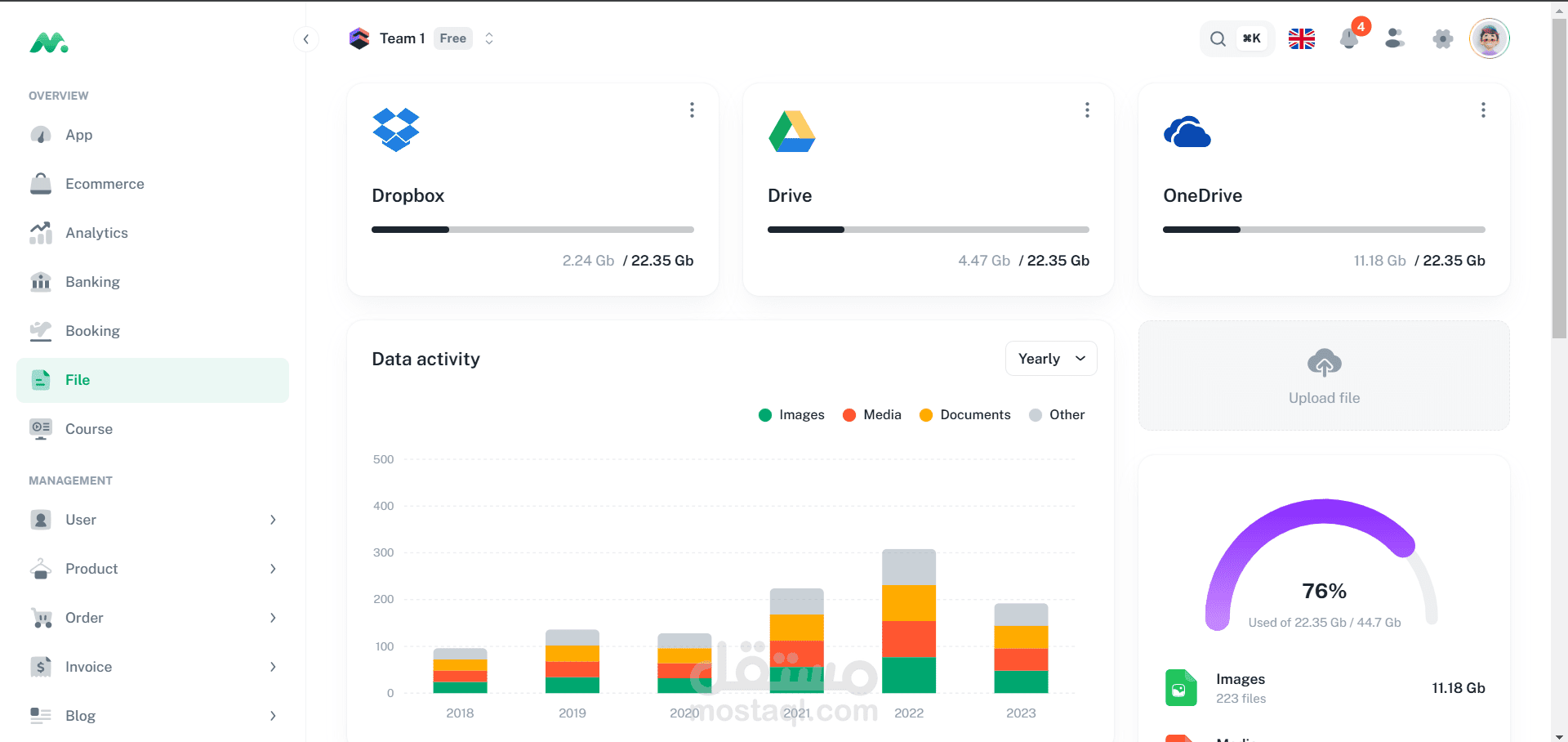 مدير ملفات: ميزة لرفع الملفات ومشاركتها مع مستخدمين آخرين مع التحكم في الصلاحيات.