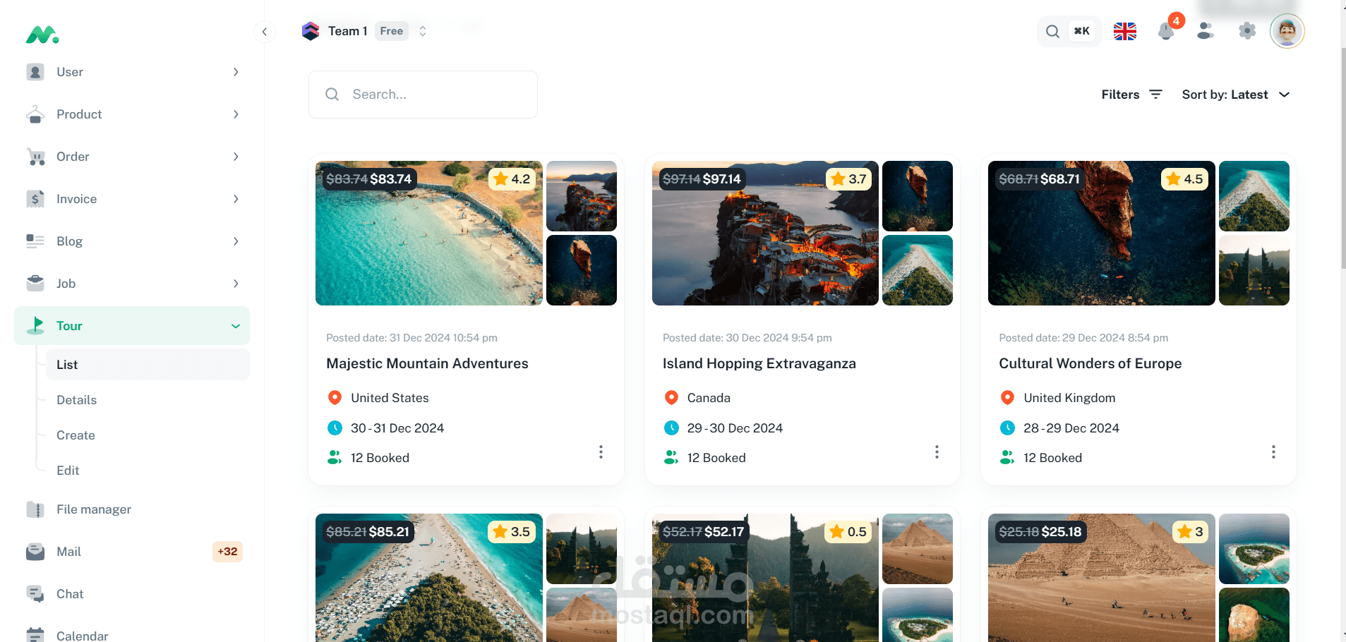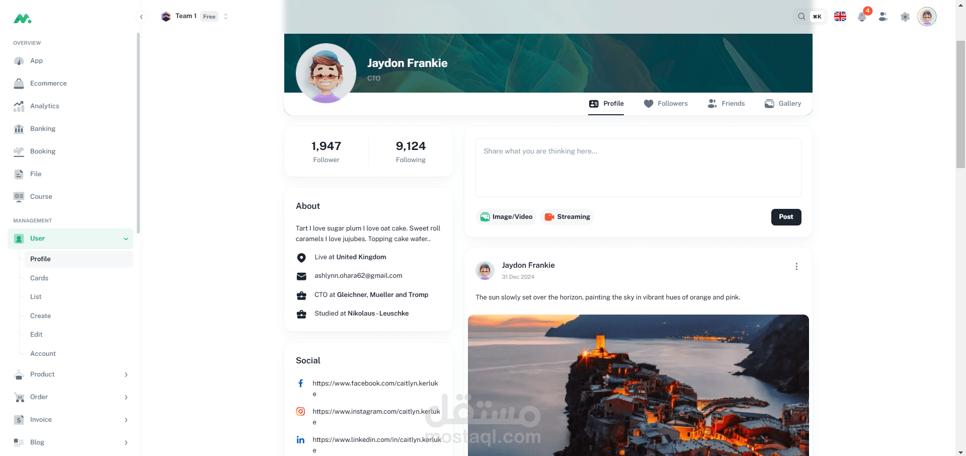 موقع شبكات اجتماعية: يضم ميزات مثل الملفات الشخصية، المنشورات، التعليقات، وتقييمات المستخدمين.
