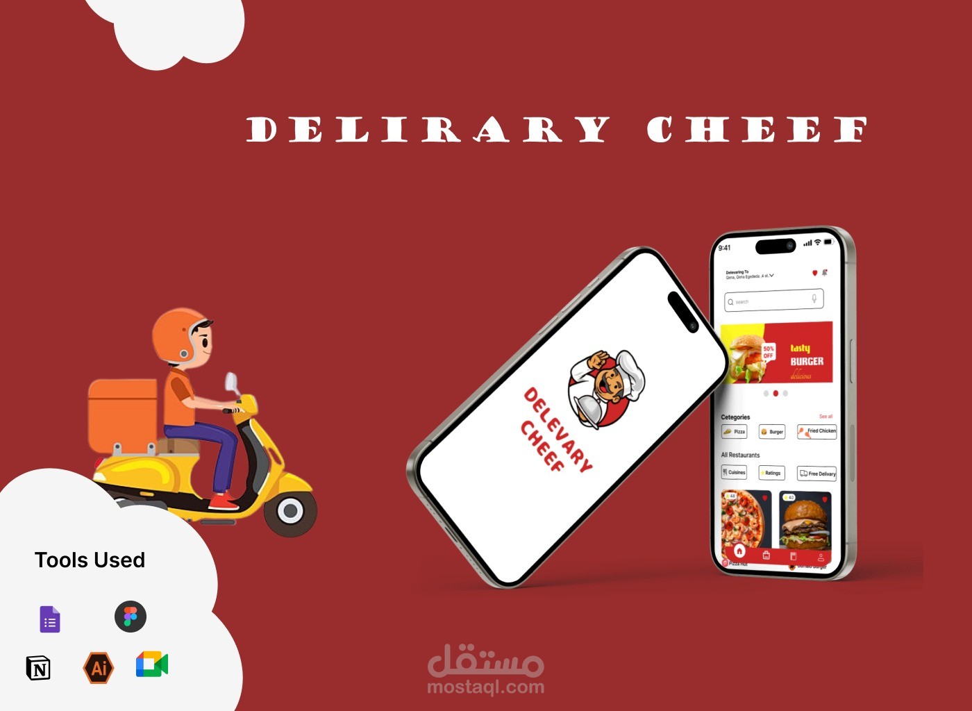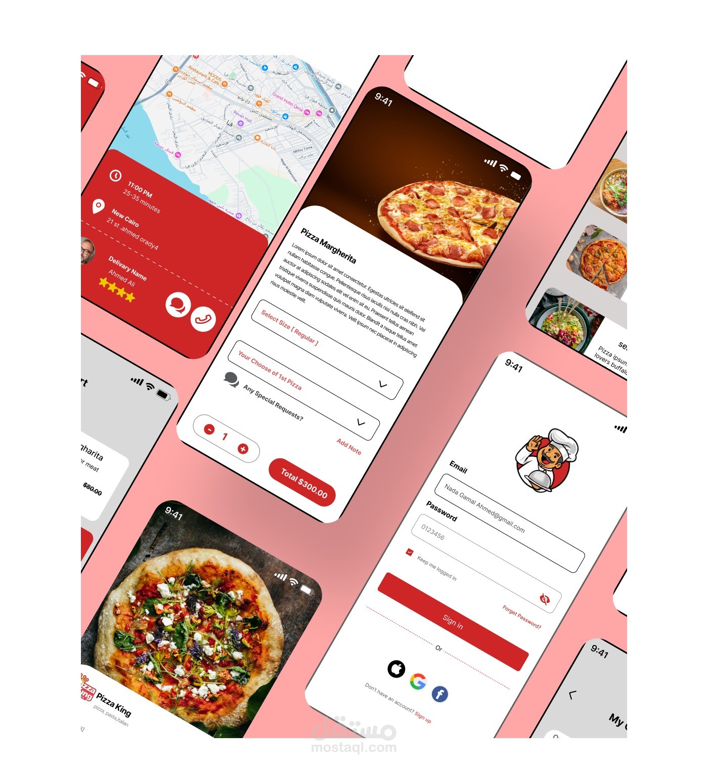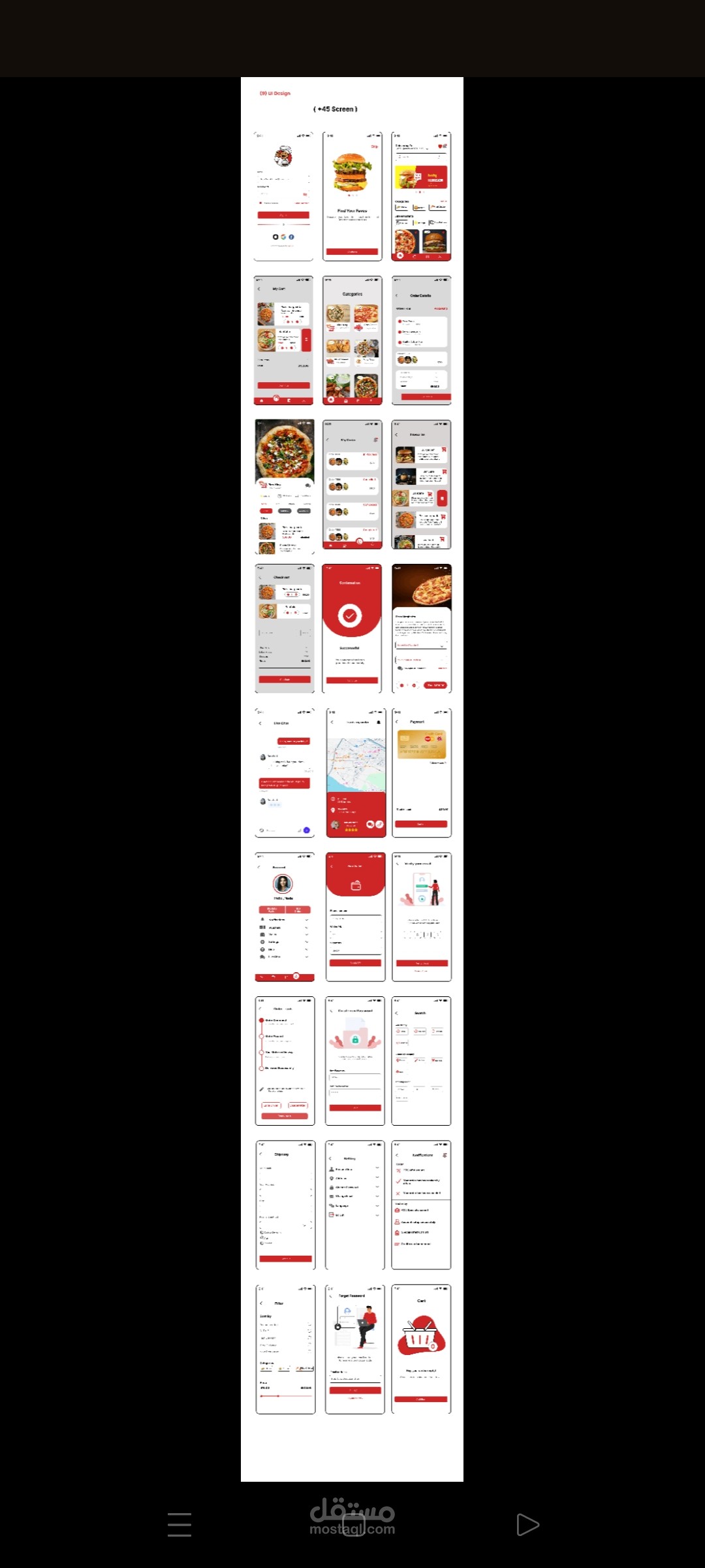 تصميم واجهه مستخدم لفكره ابلكيشن موبايل لتوصيل الطعام يضم العديد من المطاعم