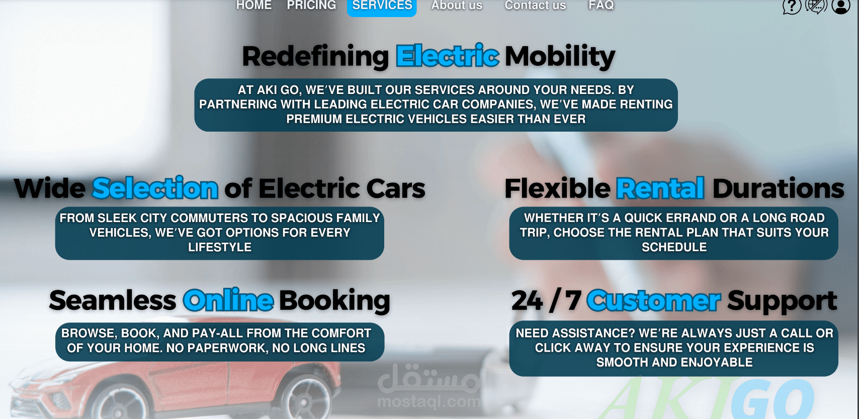 I specialize in designing and developing responsive, user-friendly websites tailored for electric car rental services like Aki-Go. With a focus on clean design and seamless functionality, I will create a modern platform that showcases your fleet, enables bookings, and provides a smooth user experience.
