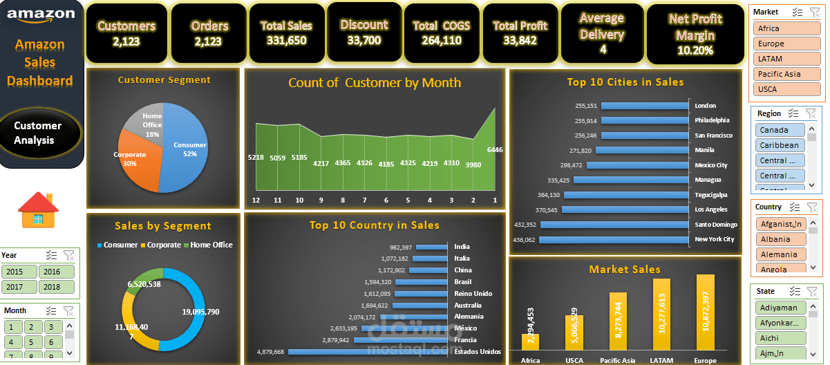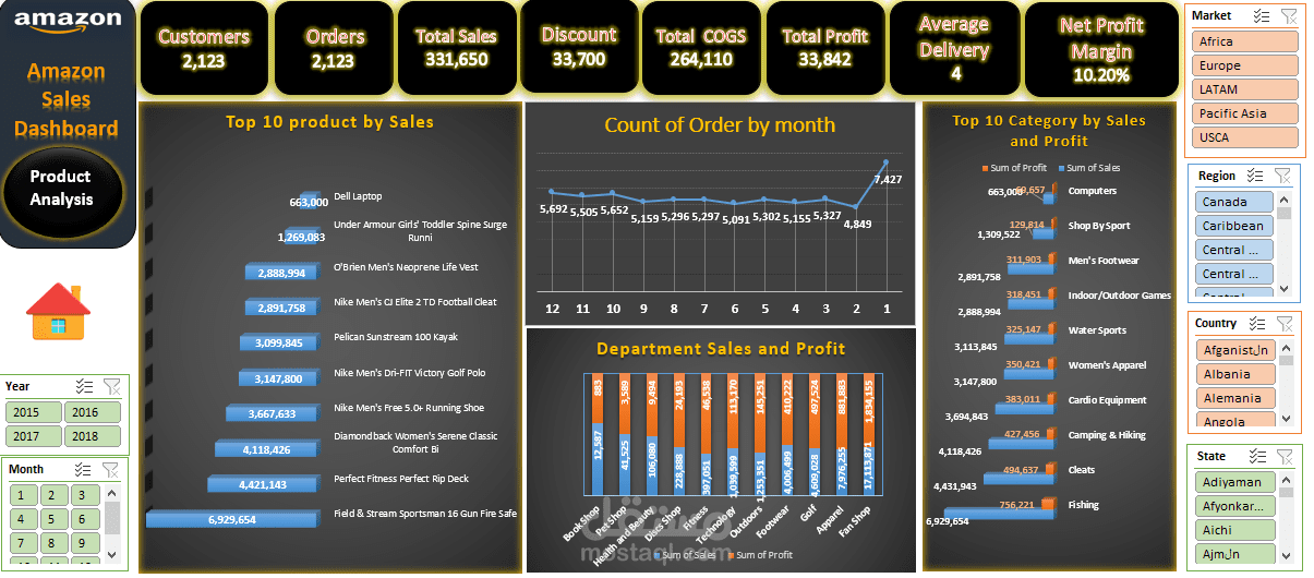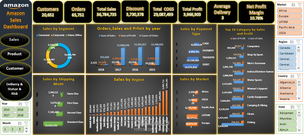 detailed year-wise analysis of Amazon sales data to understand sales trends by identifying key metrics and other factors and show the meaningful relationship between attributes.