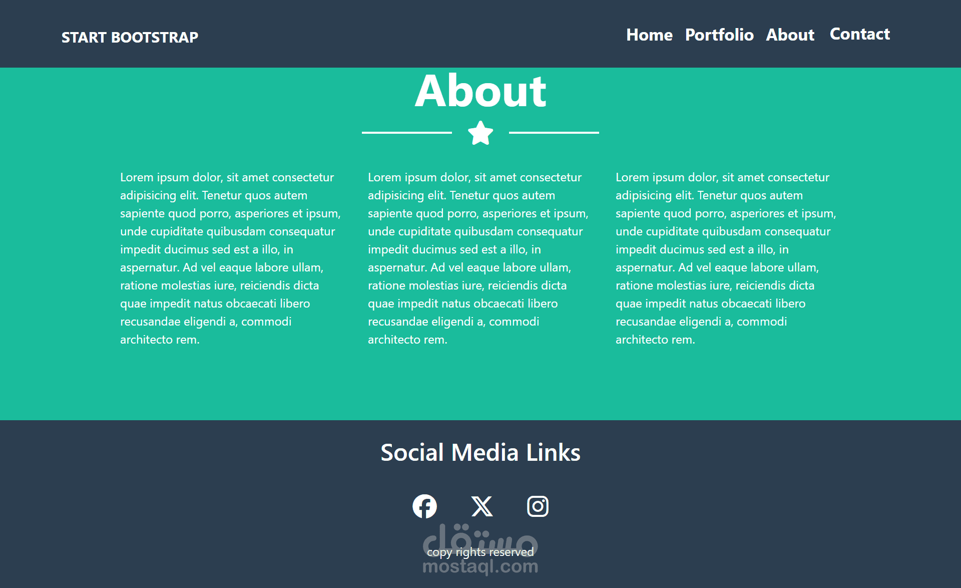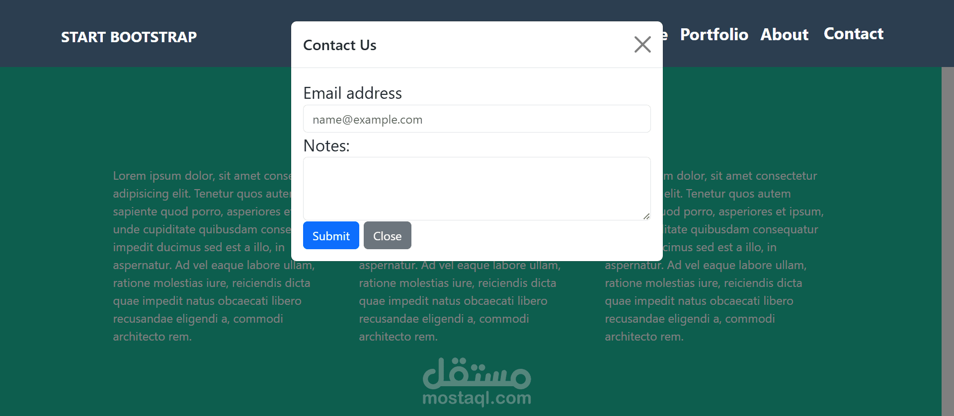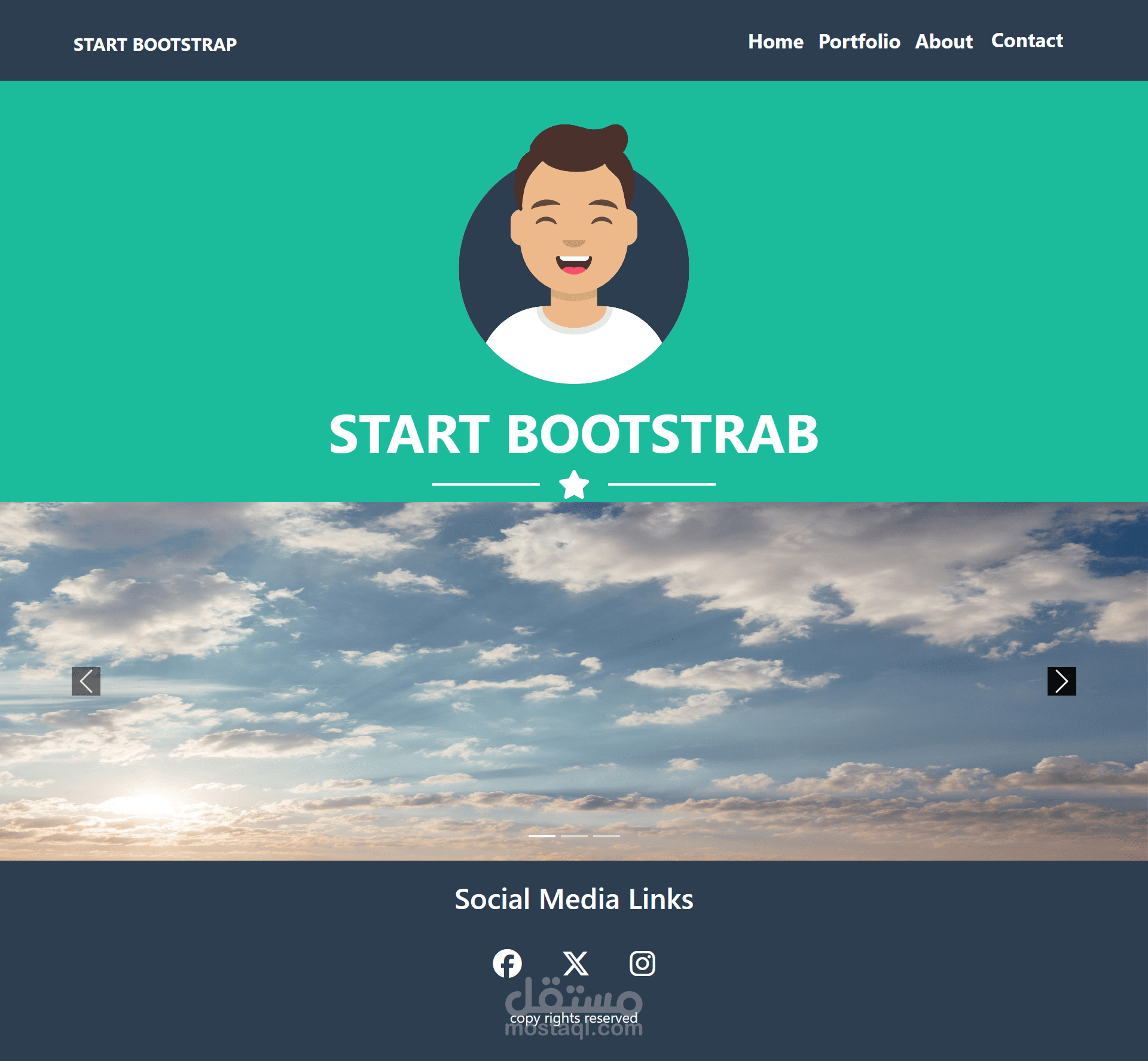 قمت بتطوير موقع ويب باستخدام HTML و CSS و JavaScript مع تكامل إطار عمل Bootstrap لتوفير تجربة مستخدم حديثة ومتجاوبة. يشتمل المشروع على تصميم صفحة رئيسية تحتوي على شريط تنقل ثابت، معرض صور باستخدام Carousel، ونموذج تواصل عبر نافذة منبثقة لسهولة التواصل مع المستخدمين. الموقع يتضمن أقسامًا أساسية مثل الصفحة الرئيسية (Home)، المعرض (Portfolio)، و قسم "عنّا" (About)، بالإضافة إلى رابط للتواصل من خلال نموذج في نافذة منبثقة.