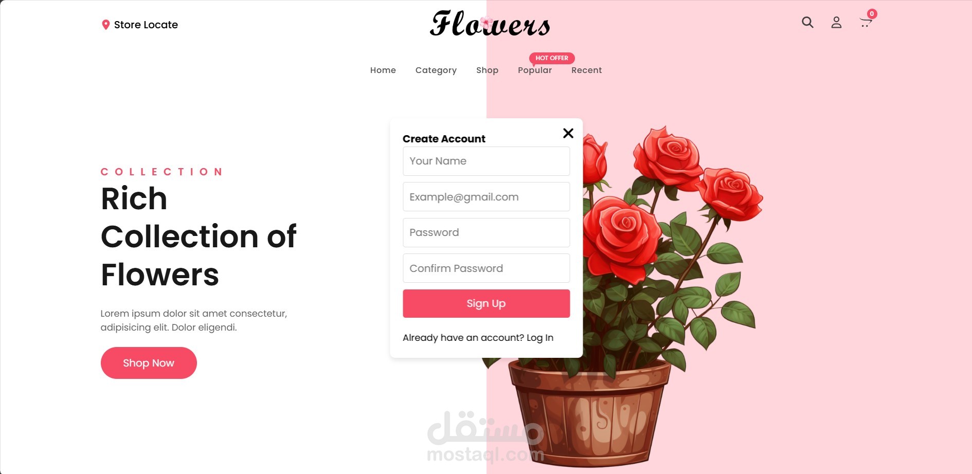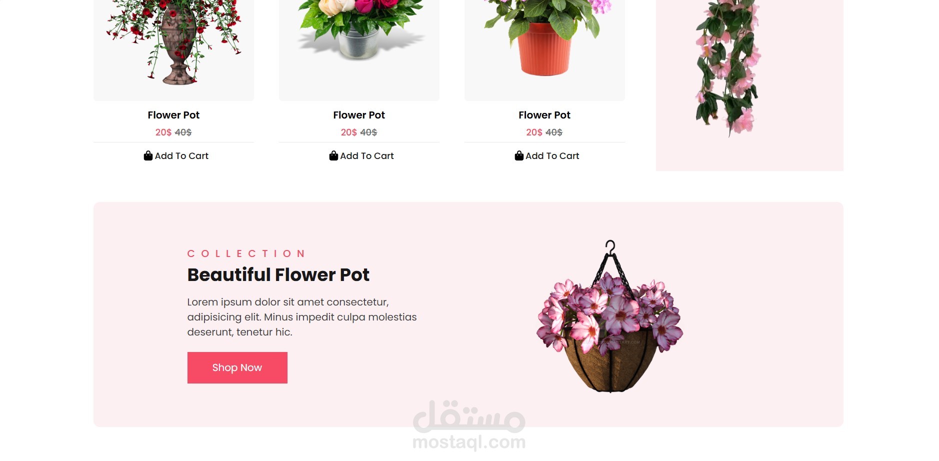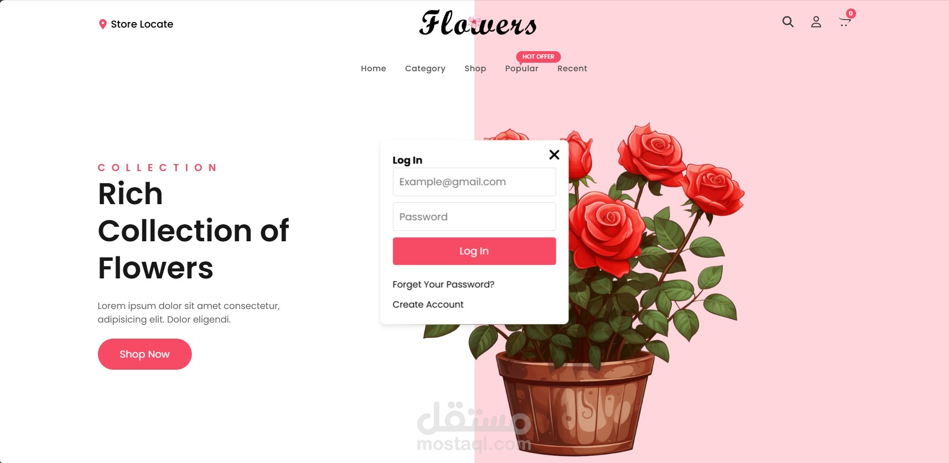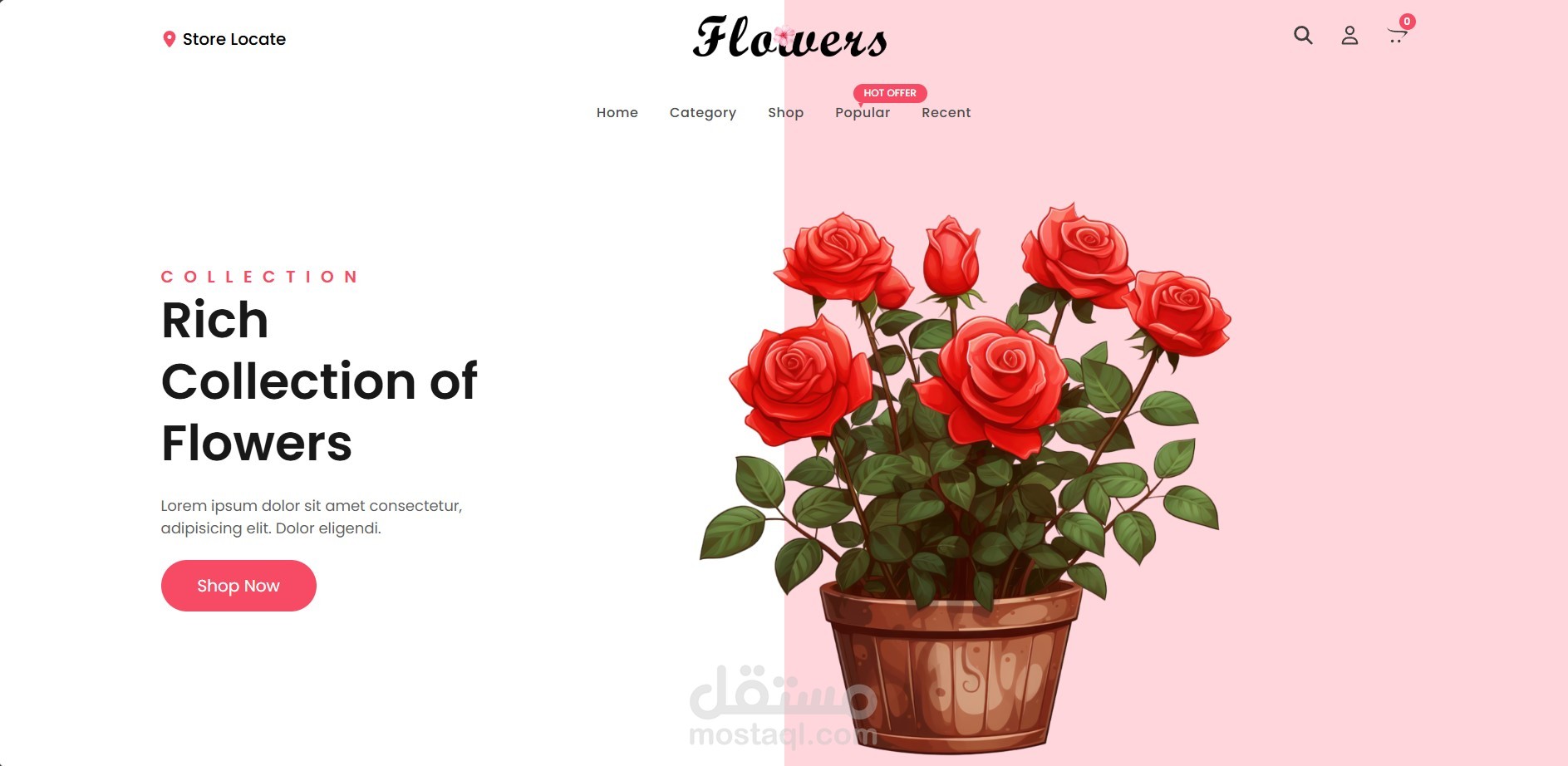 هذا المشروع عبارة عن صفحة ويب مميزة لمتجر لبيع الزهور بتصميم عصري وواجهة استخدام سهلة. تتضمن الصفحة الأقسام التالية: