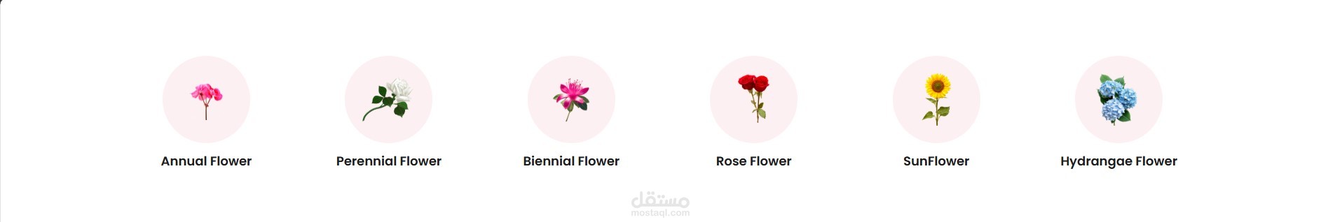 - يعرض مجموعة من الفئات مثل الزهور السنوية، الزهور المتعددة السنوات، ورود الشمس، وغيرها.