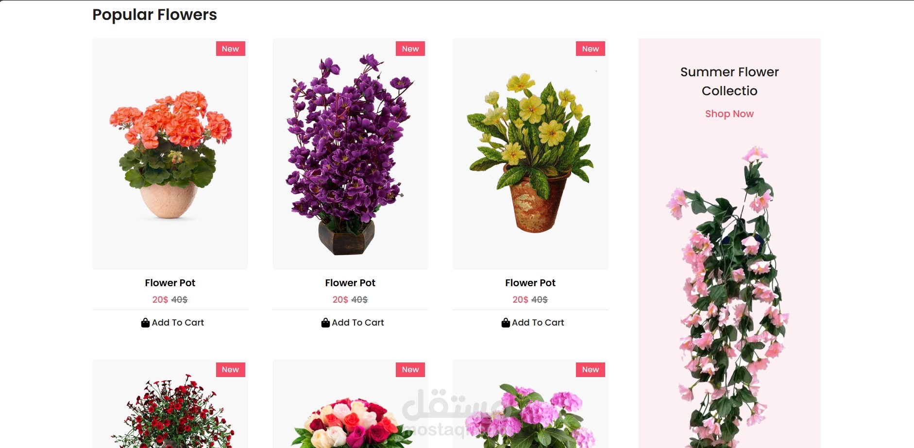 - قسم مميز يعرض الزهور الأكثر شعبية مع صور وأزرار للشراء.