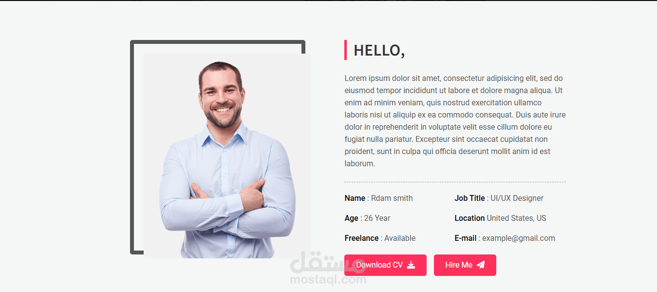 و عرض ايضا نبذات تعريفيه عنه و عن مشاريعه و كيفيه التواصل معه و رفع ال cv