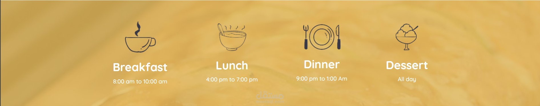 شريط التنقل: يحتوي الشريط على شعار الموقع على اليسار وروابط تنقل على اليمين. هذه الروابط تتغير عند التمرير (hover) لتظهر تحتها خط مميز بلون ذهبي، مما يعزز التفاعل البصري مع المستخدم.
