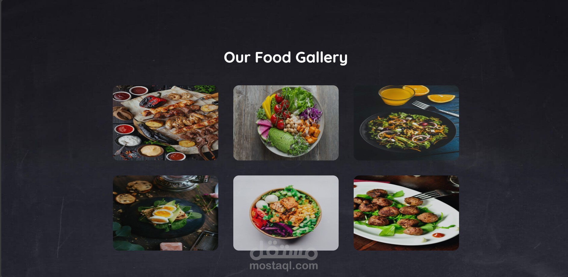 معرض الصور: يحتوي على مجموعة من الصور المتنوعة التي تعرض مجموعة من الأعمال أو الأنشطة. الصور تكون مربعة أو مستطيلة مع تأثيرات عند المرور عليها.