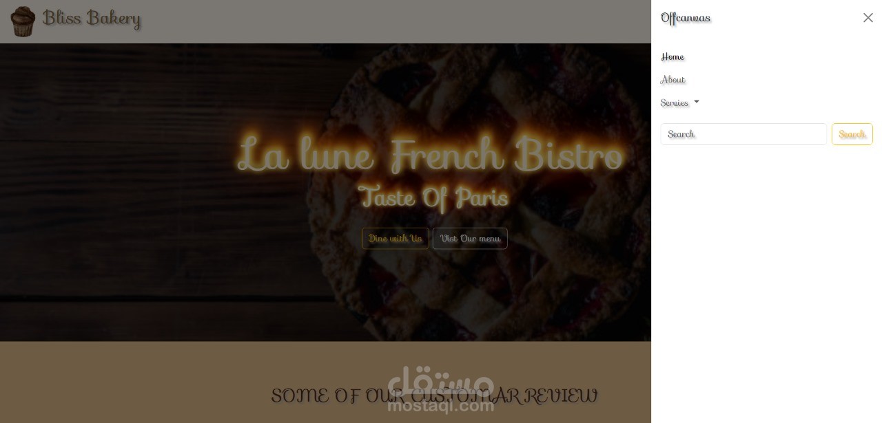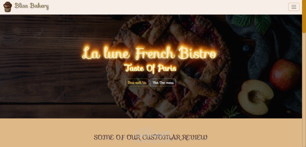 قمت بتصميم وتطوير موقع ويب لمحل مخبوزات يسمى "Bliss Bakery" باستخدام Bootstrap. يهدف الموقع إلى تقديم تجربة استخدام سلسة وجذابة لزوار المحل، مع التركيز على عرض المنتجات، الأسعار، والعروض الخاصة.