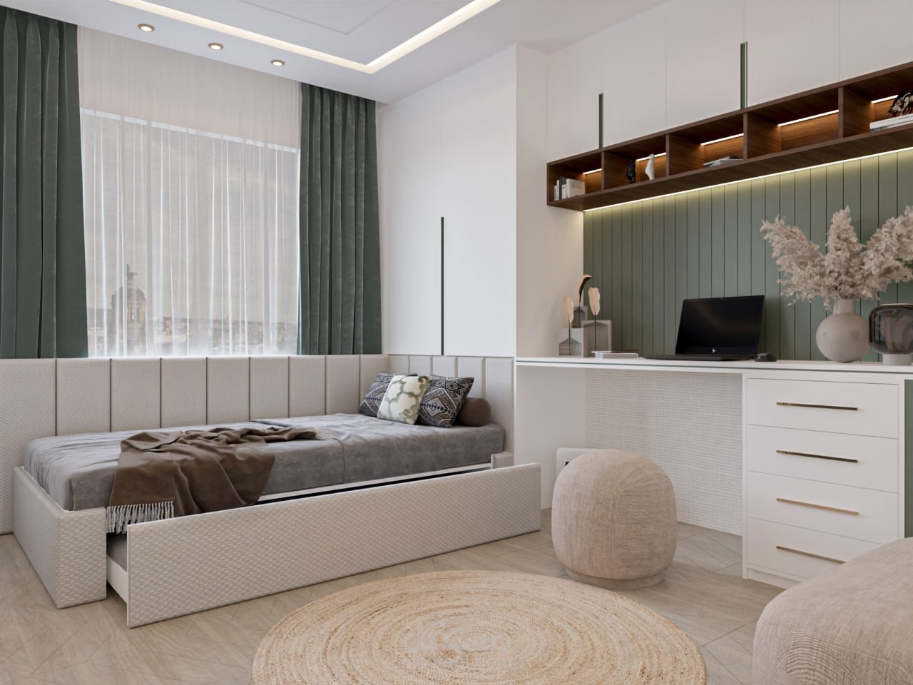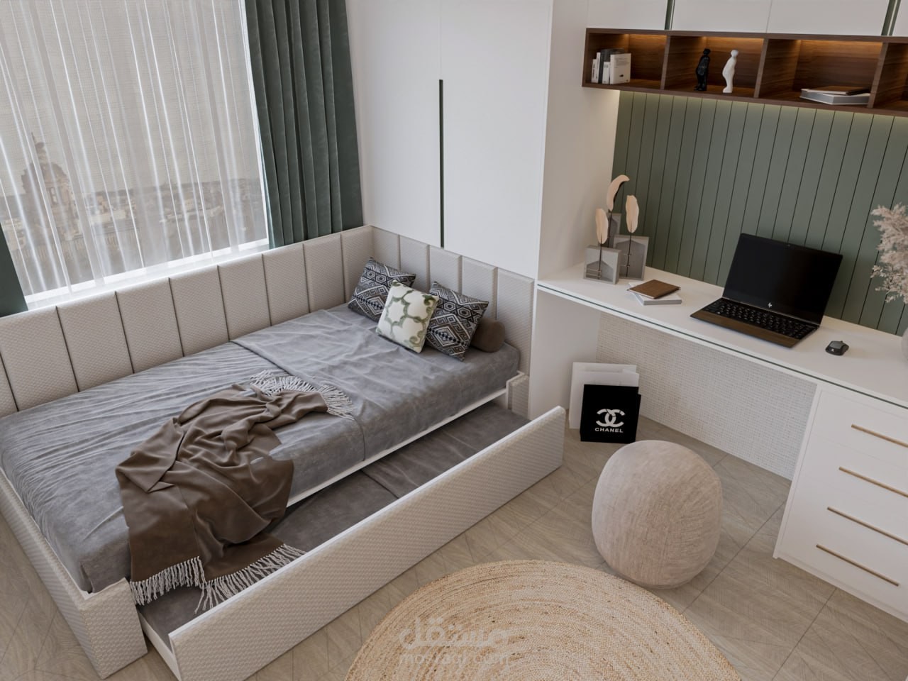 غرفة نوم بنات تم تصميمها لاحد المالكين في مجمع سكني