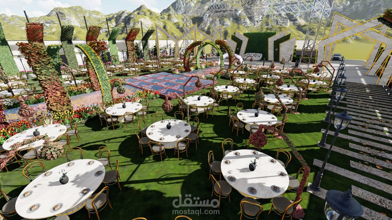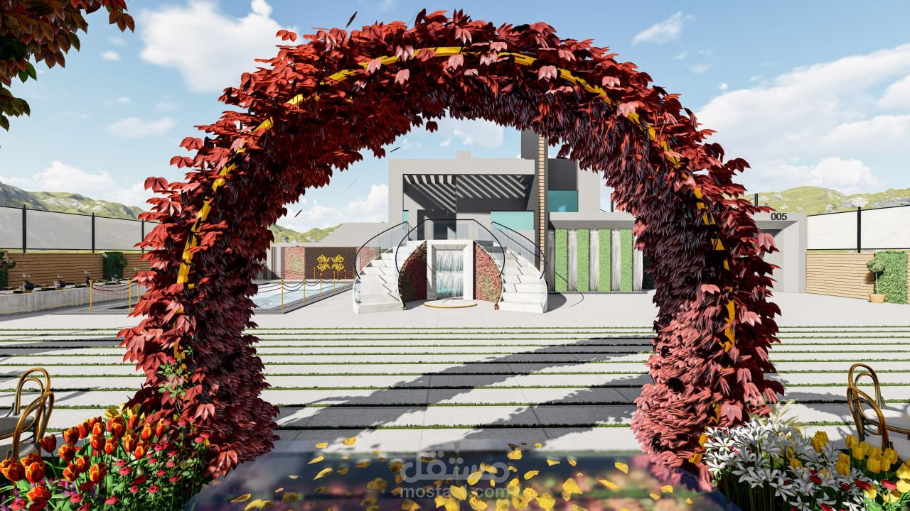 تصميم لأحد قاعات الافراح الخارجية في المملكة الاردنية الهاشمية