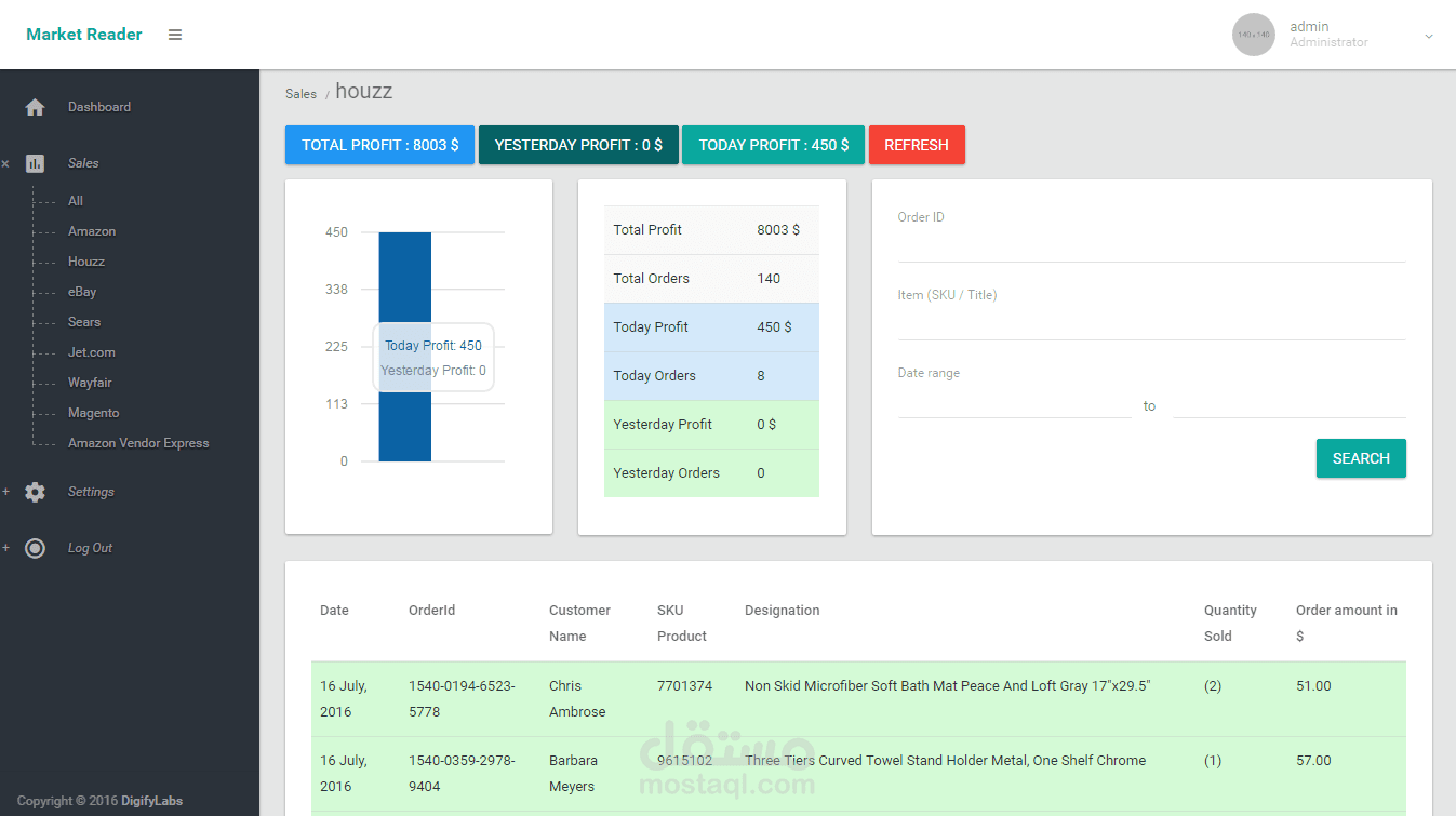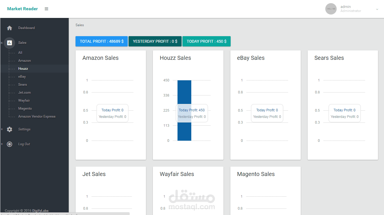 - A Project for collecting data from (Amazon - eBay - Houzz -Magento - Sears - Jet - Wayfair) acounts using their APIs then provide some statistics & graphs for the sales & profits ... etc .