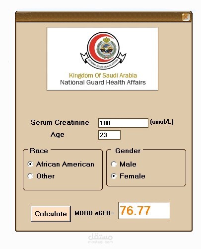 - desktop application to calculate EFGR by 2 methods ( MDRD - Cockcroft-Gault Formula).