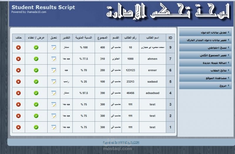 - simple script for students exam results.