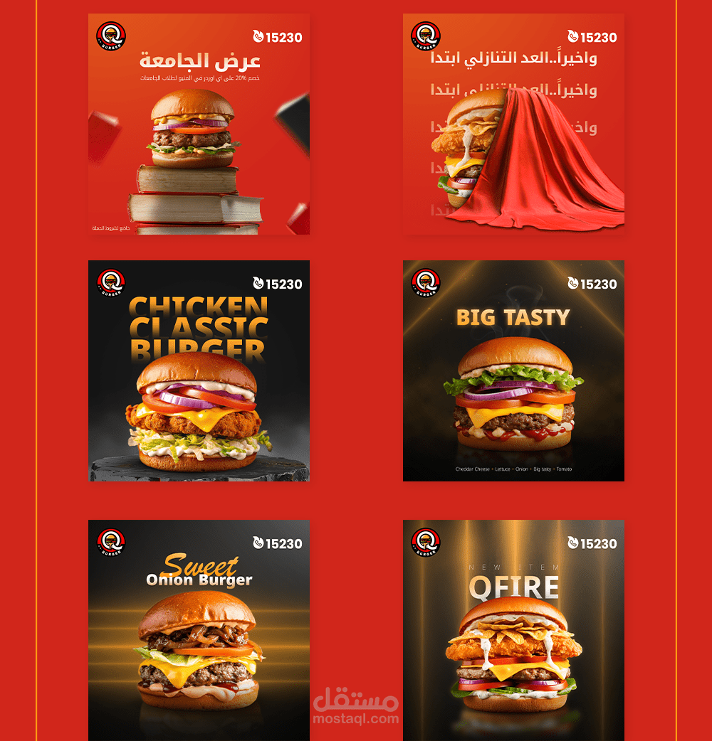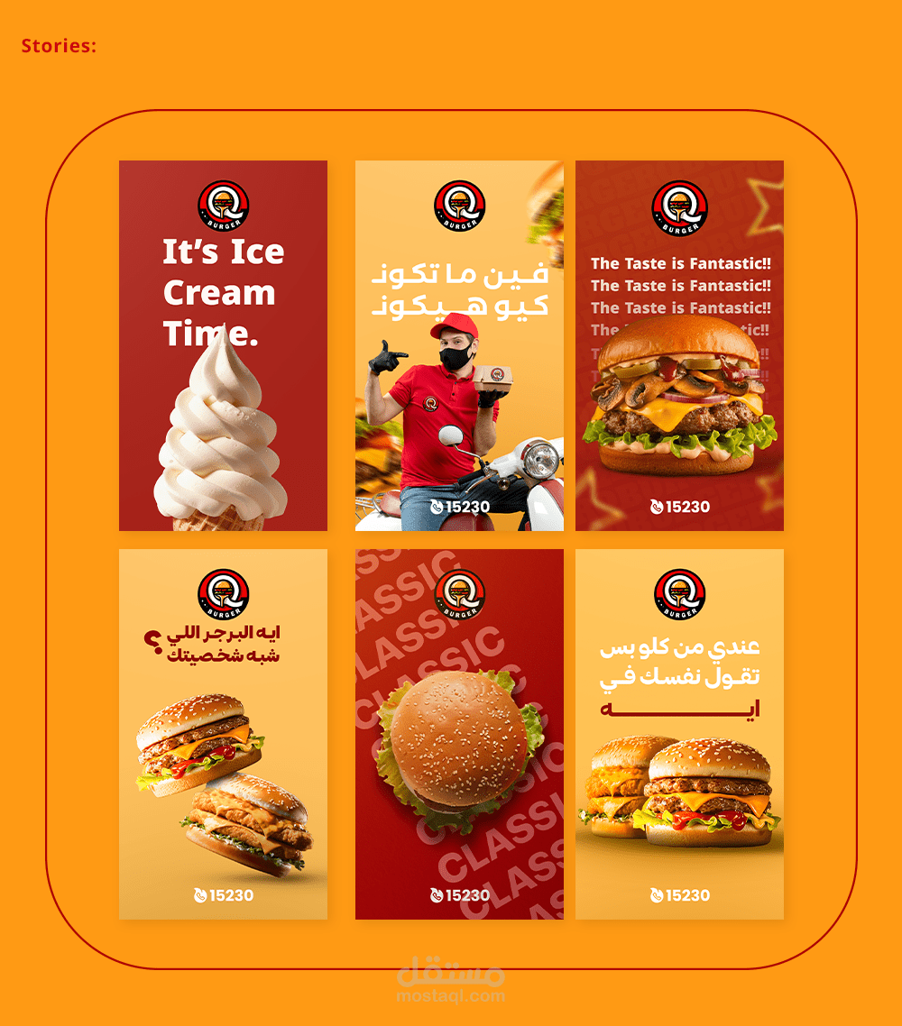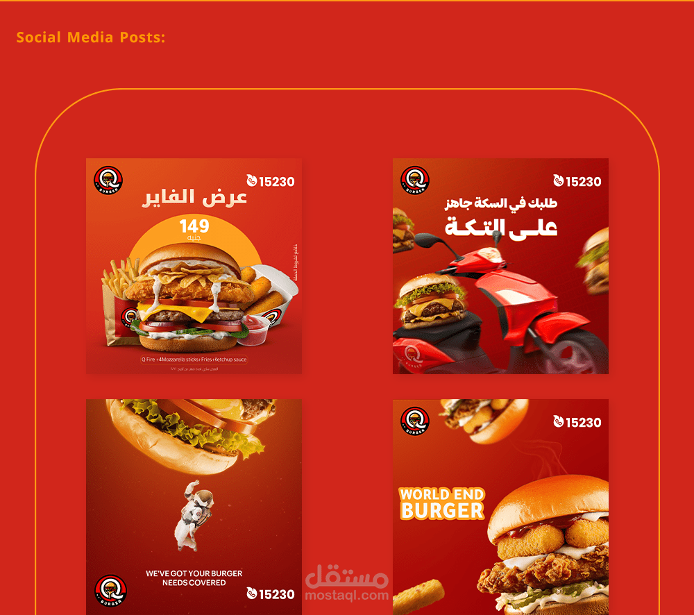 عمل مع شركة مقدسي لتمويل المطاعم الذي يندرج تحتها مطعم كيو برجر المتخصص في عمل البرجر والوجبات السريعة حيث عملت معهم اكثر من 5 شهور بمعدل اكثر من 90 تصميم حيث صنعت هوية بصريةو تصاميم مميزة وبكيجنج والكثير من الاستشارات في مجال التسويق والميديا.وكان عملا مميزاً .