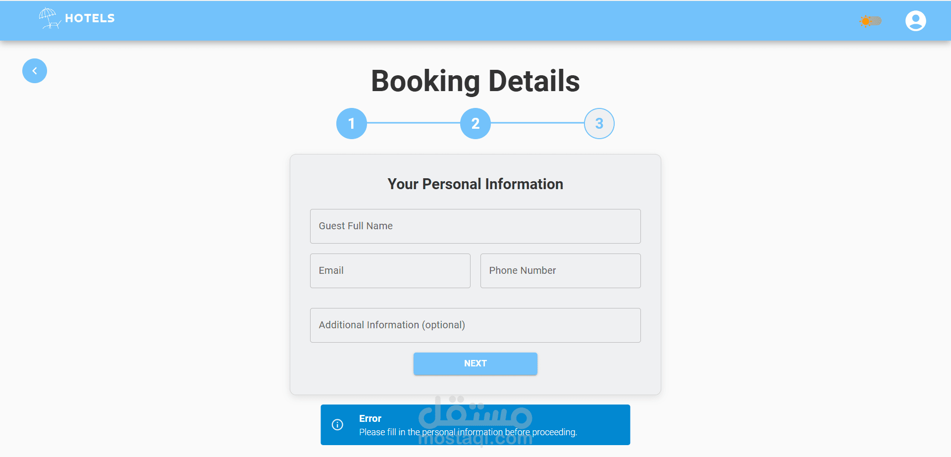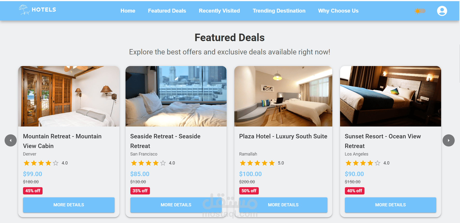 تطبيق ويب شامل لحجز أماكن الإقامة يوفر تجربة متكاملة واحترافية للمستخدمين والمسؤولين، مما يجعله مشروعًا مثاليًا لإظهار مهاراتك في التصميم والتطوير البرمجي.