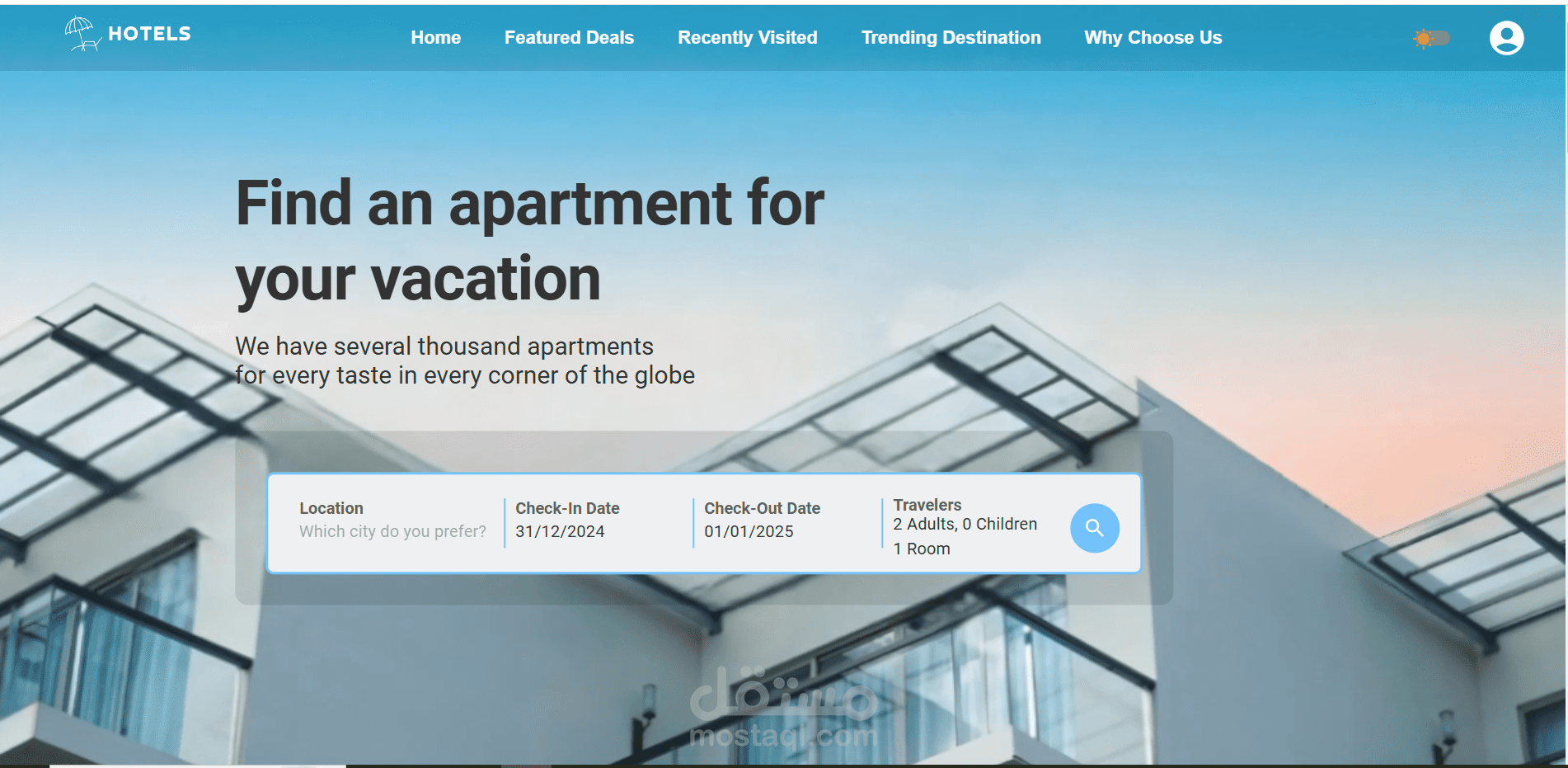 توفير منصة حديثة لحجز أماكن الإقامة بطريقة سهلة وسريعة.