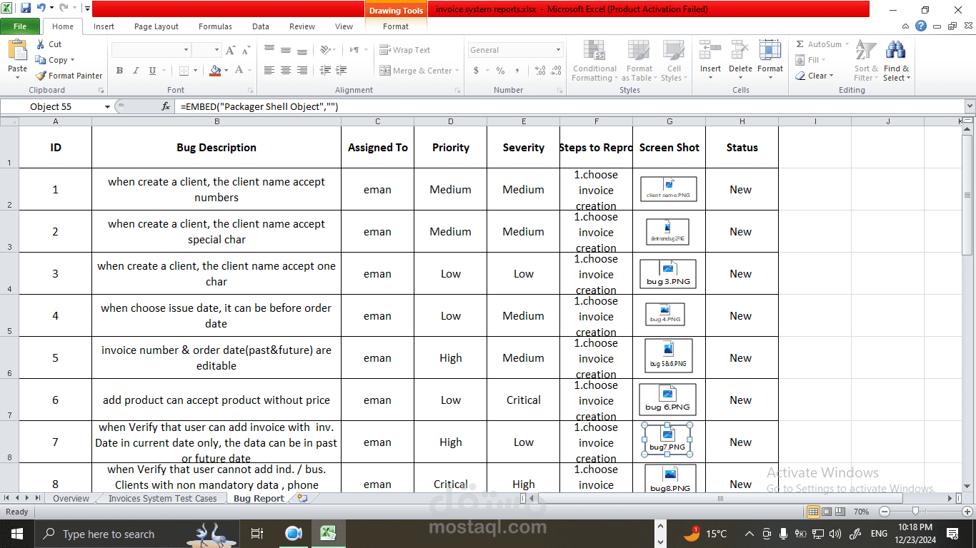 Microsoft Excel: لإعداد حالات الاختبار وتوثيق النتائج.