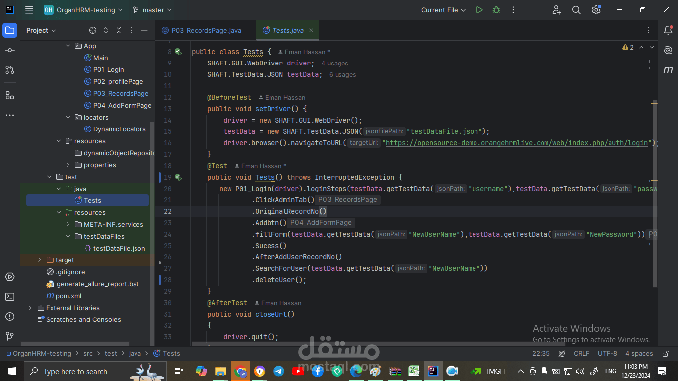 تم تصميم وتنفيذ حل أتمتة لاختبار وظائف أساسية في نظام إدارة الموارد البشرية (OrangeHRM) باستخدام Selenium وJava. ركز المشروع على ضمان دقة العمليات الأساسية وتكامل البيانات مع إعداد تقارير احترافية باستخدام Allure Reporting.