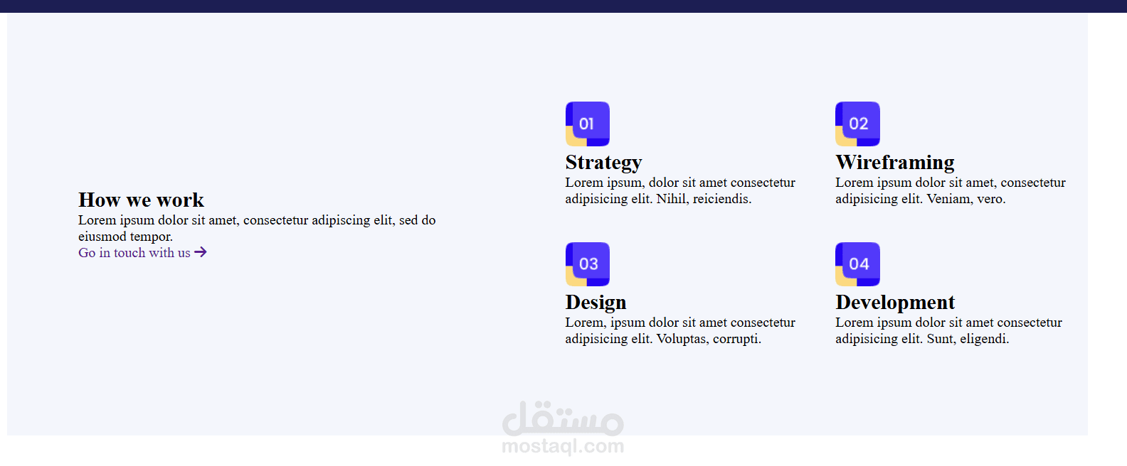 يعرض 3-4 ميزات أو خدمات بطريقة منظمة باستخدام أيقونات وعناوين فرعية.