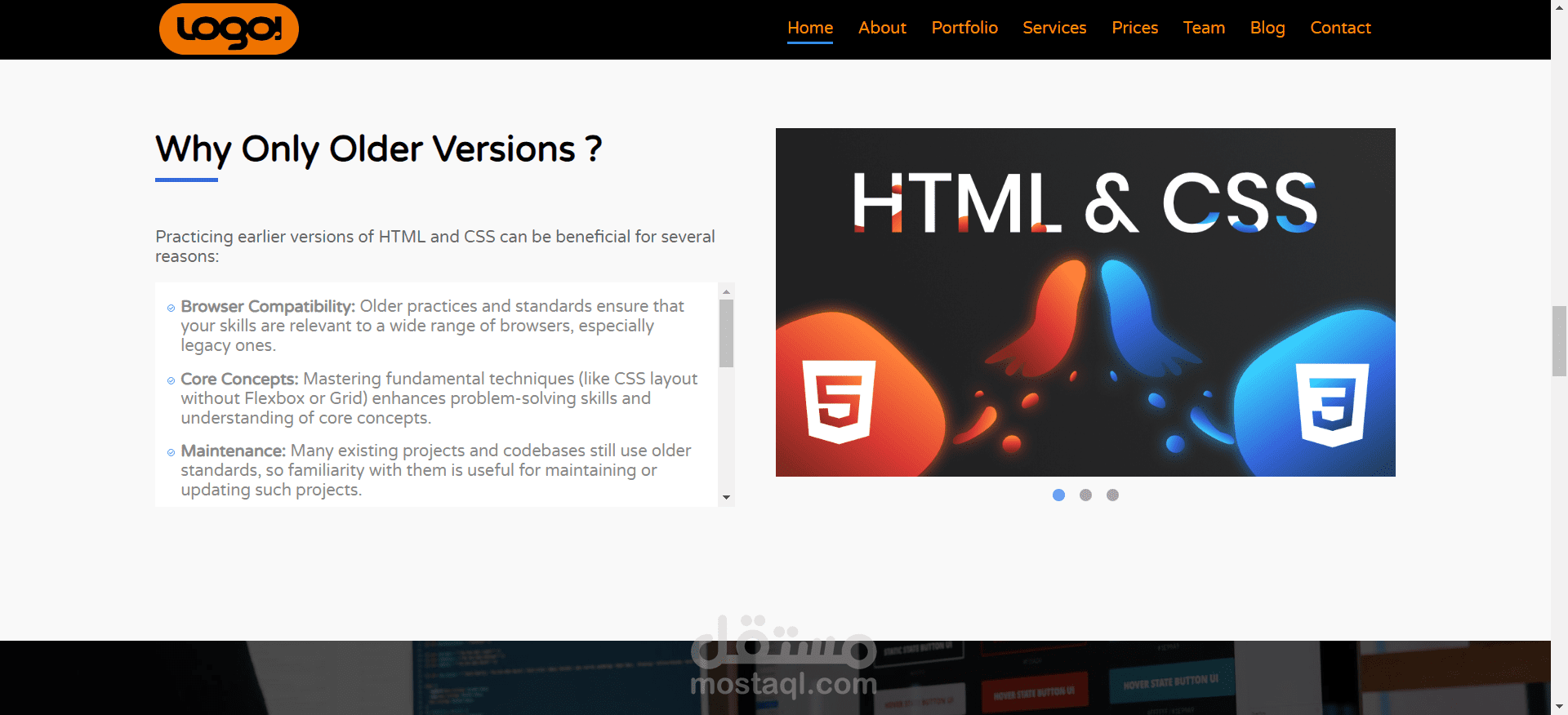 As a developer it is good for me to master earlier versions of HTML and CSS for several reasons, However I used some CSS3 features such as "border-radius" for design purposes but overall it is only older HTML/CSS.