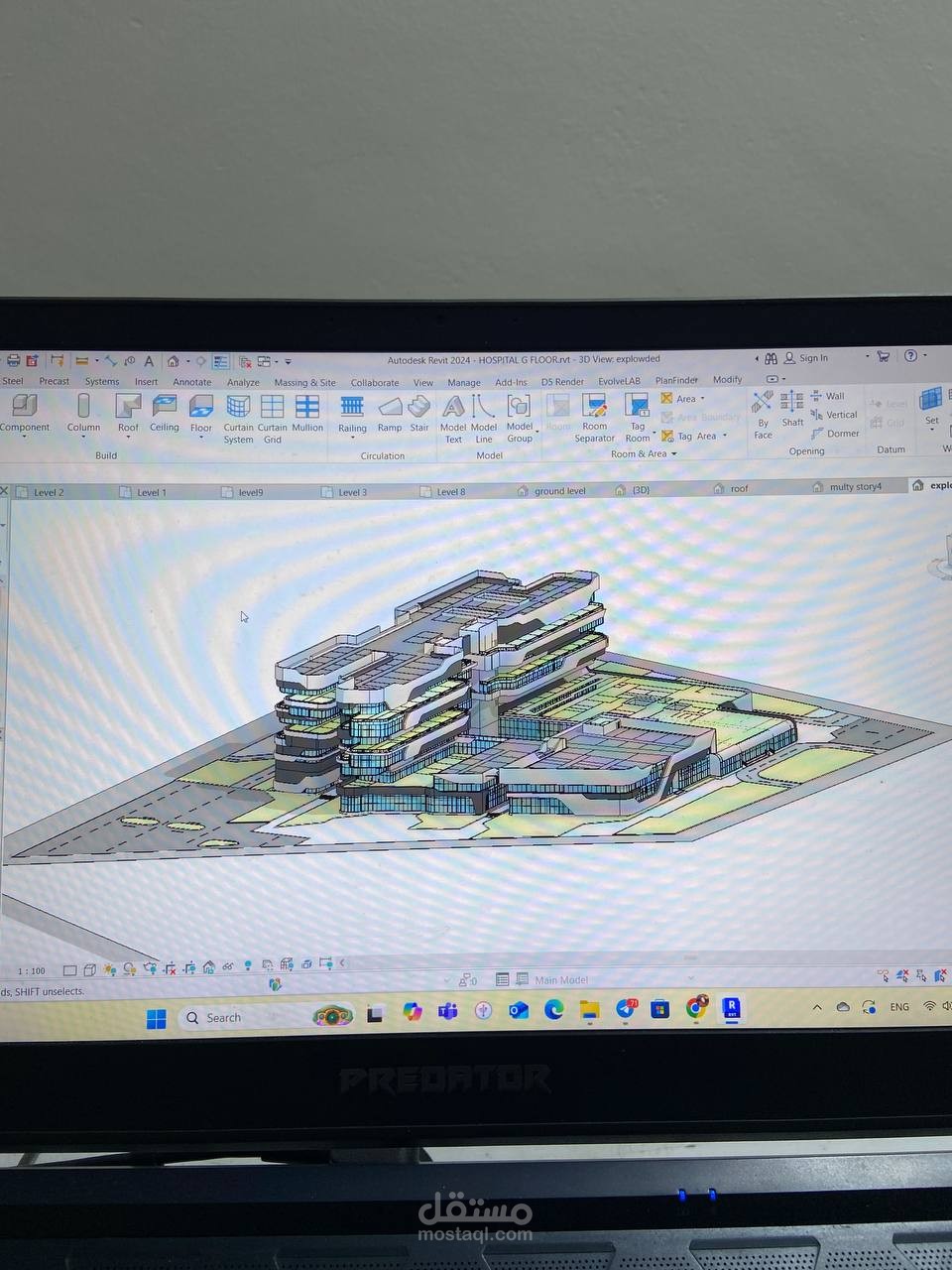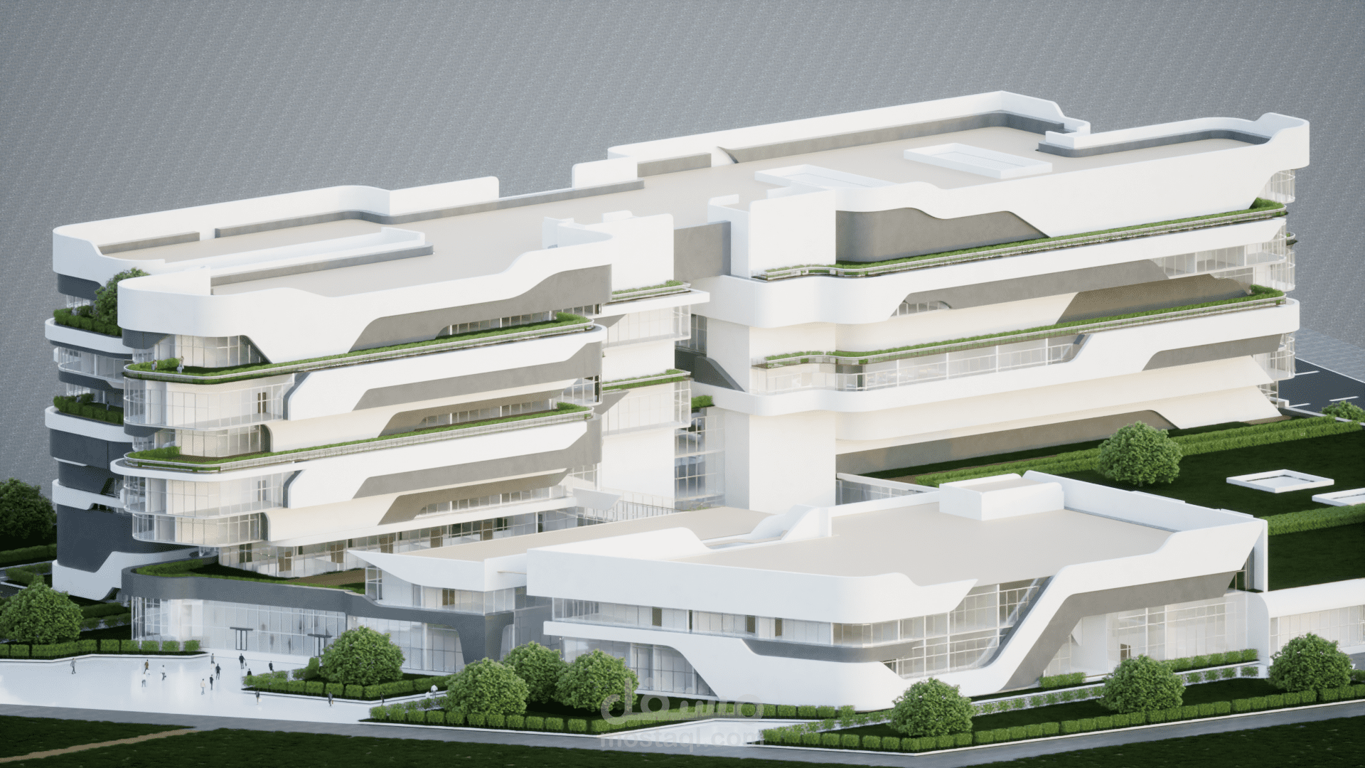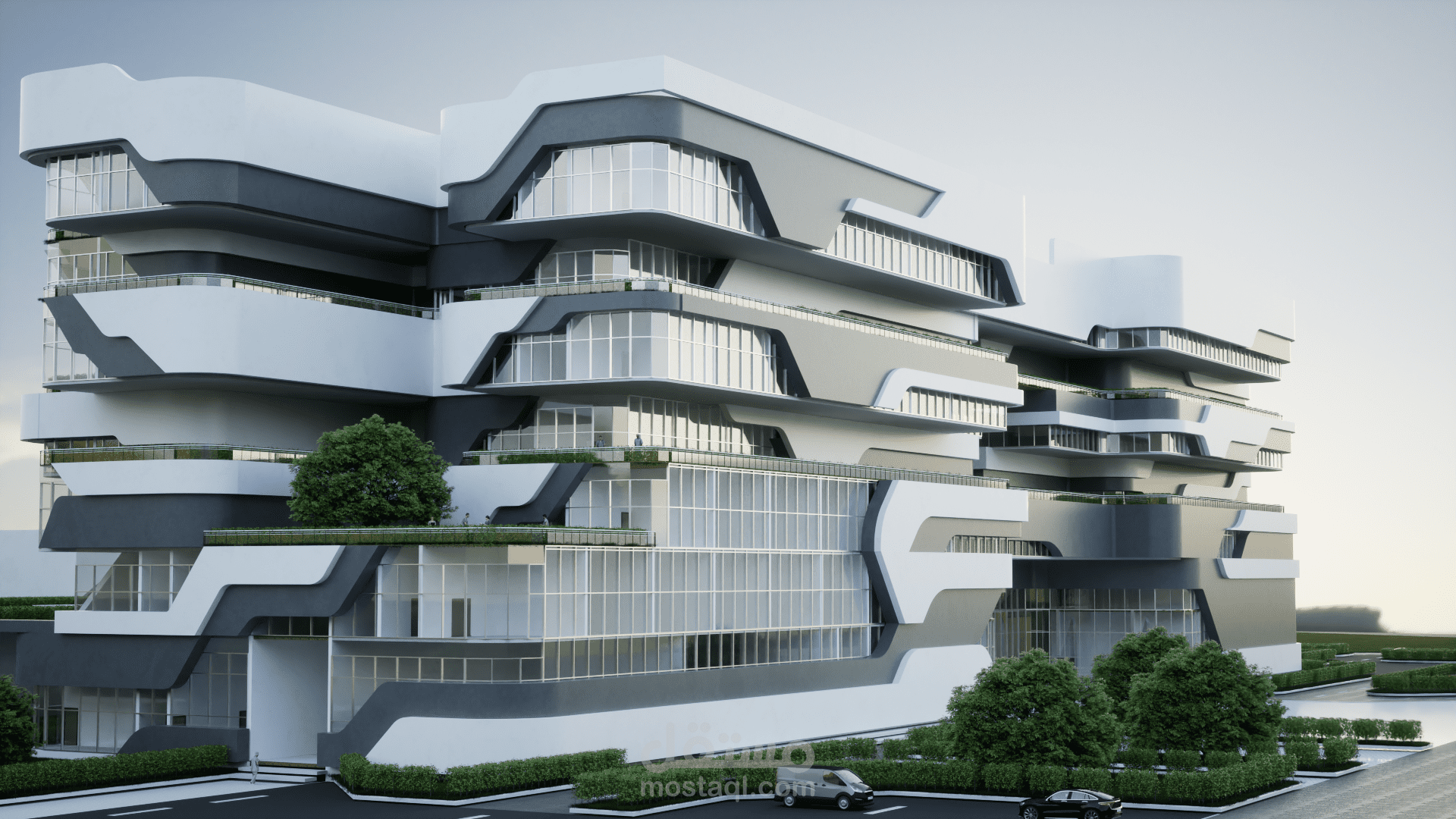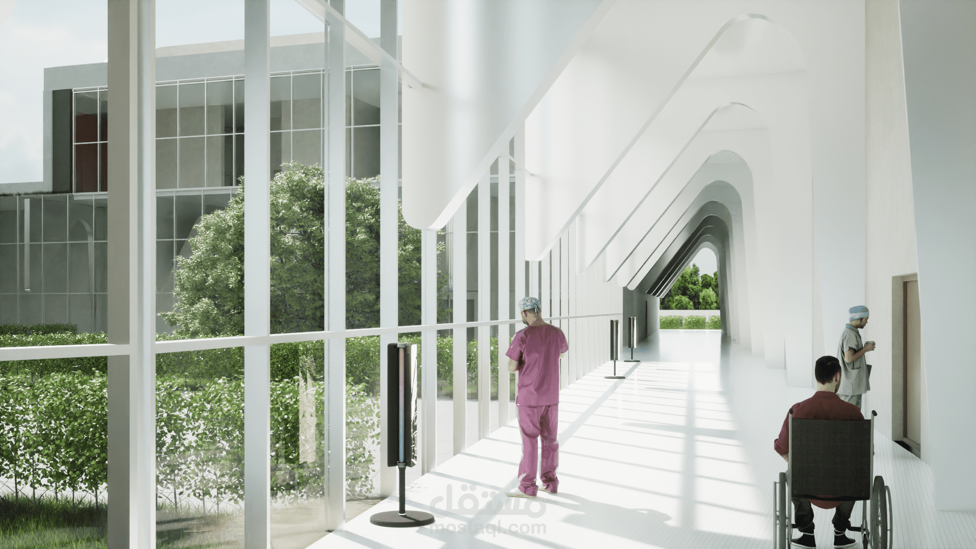 مستشفة عامة تحتوي على جميع الاقسام الخاصة بل مستشفى الفكرة التصميمية هي تجريد للقفص الصدري للحوت ومبنى مستدام في نفس الوقت يحقق جميع معايير الاستدامة من توفير للطاقة توجيه صحيح تهوية طبيعية وغيرها من الامور المهمة في الاستدامة وحاصل على جائزة تقدير في مسابقة الابنية المستدامة سنة 2024