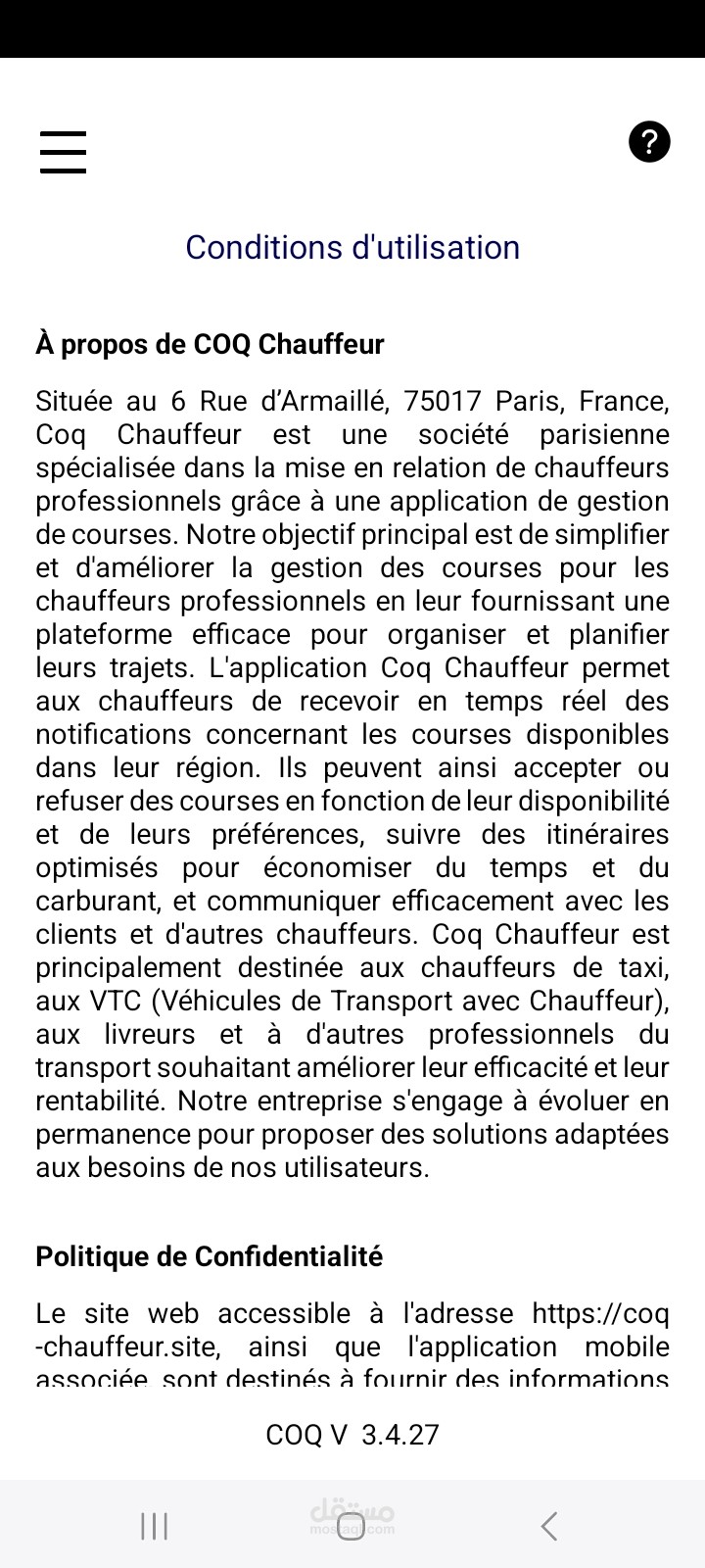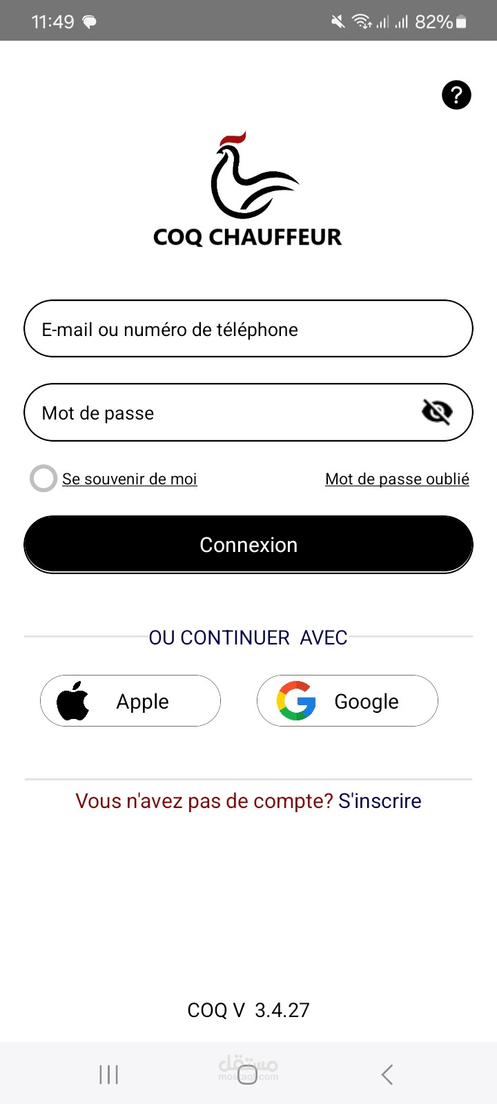COQ CHAUFFEUR هو تطبيق للهاتف النقال يعمل على أنظمة Android و IOS صمم بواسطة React-native مخصص للسائقين ووسيط بين الركاب الذين يبحثون عن وسيلة سفر آمنة ومريحة وسريعة والسائقين المحترفين المستقلين.