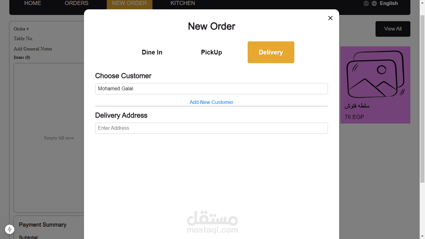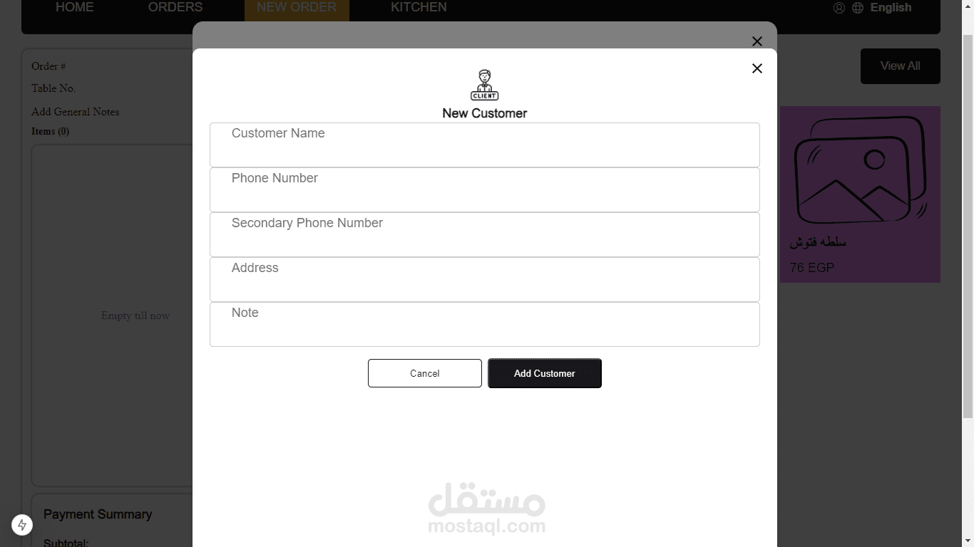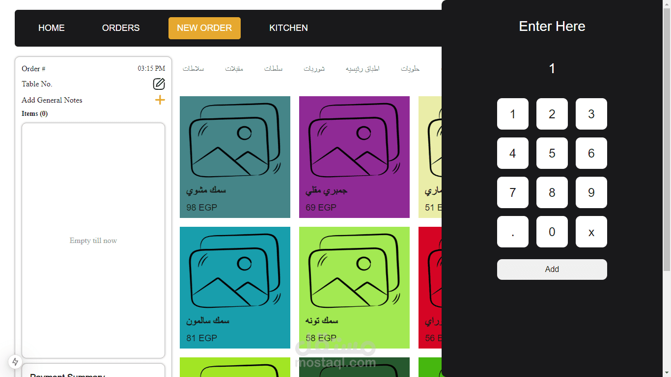 إمكانية إضافة، تعديل، وحذف العناصر من الطلبات.