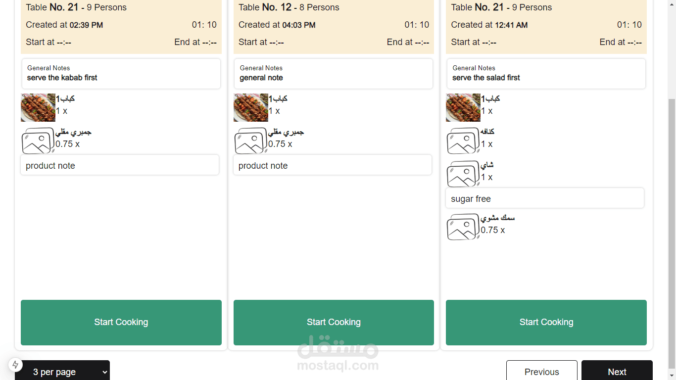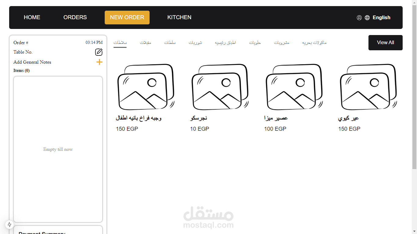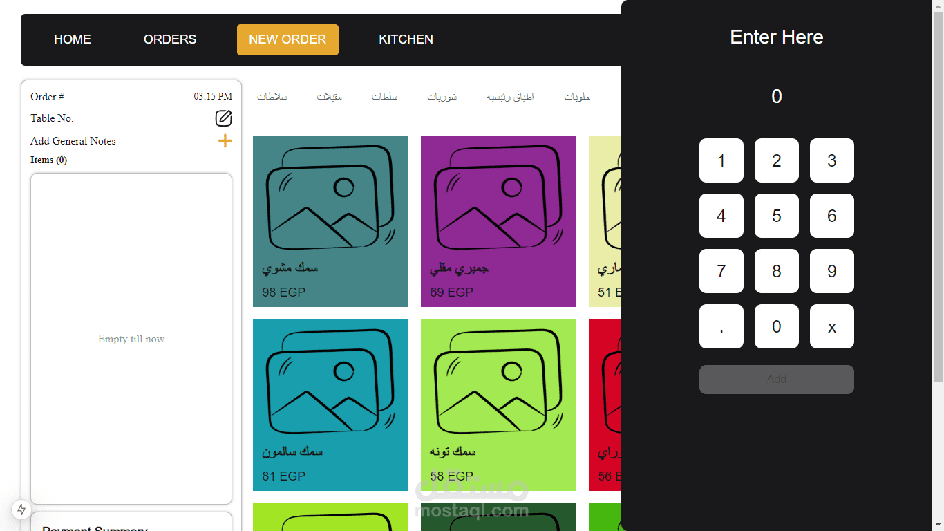 إمكانية إضافة، تعديل، وحذف العناصر من الطلبات.