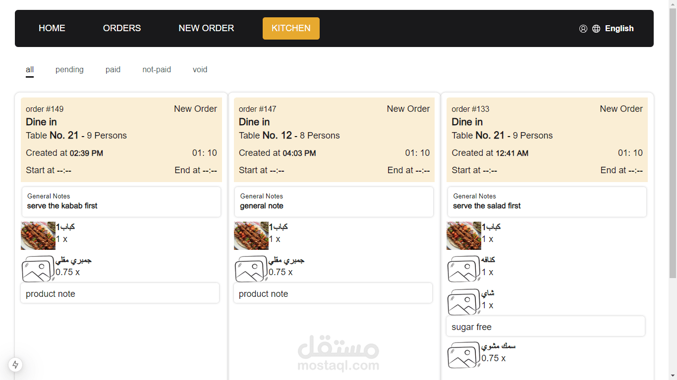 يتم تحديث الطلبات بشكل فوري لضمان تنسيق العمل بين المطبخ والموظفين.