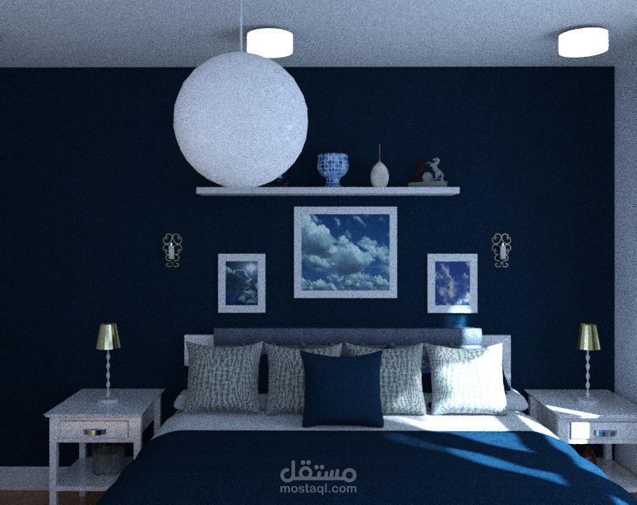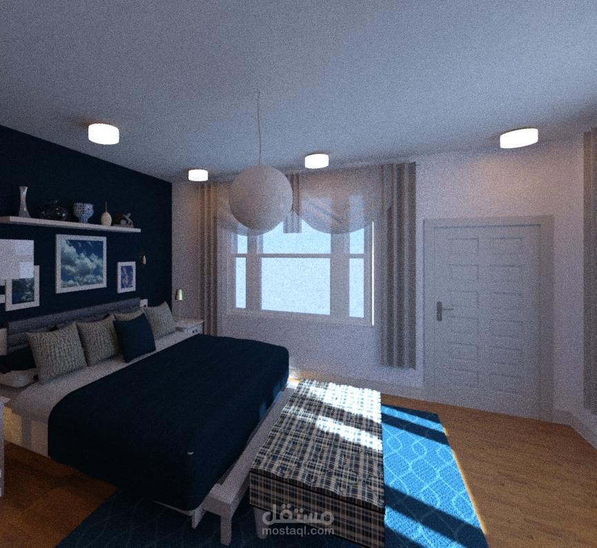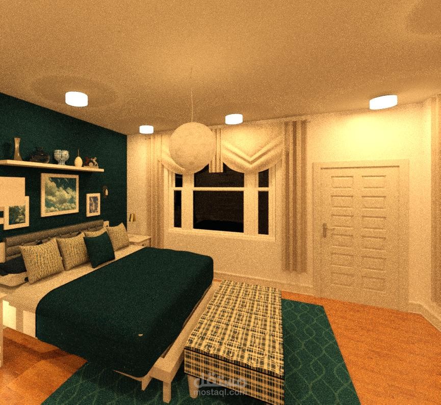 غرفة نوم لشخصين , مع اختلاف الاضاءات وجمال الاوان