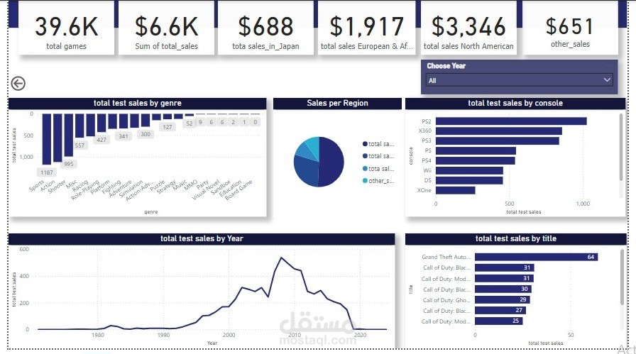 تحليل مبيعات ألعاب الفيديو من أمريكا الشمالية واليابان والاتحاد الأوروبي وأفريقيا وبقية العالم لـ 64016 عنوانًا تم إصدارها من عام 1971 إلى عام 2024، بما في ذلك معلومات مثل تقييم النقاد والنوع ووحدة التحكم والمزيد.