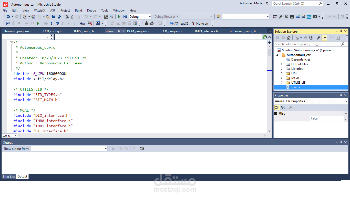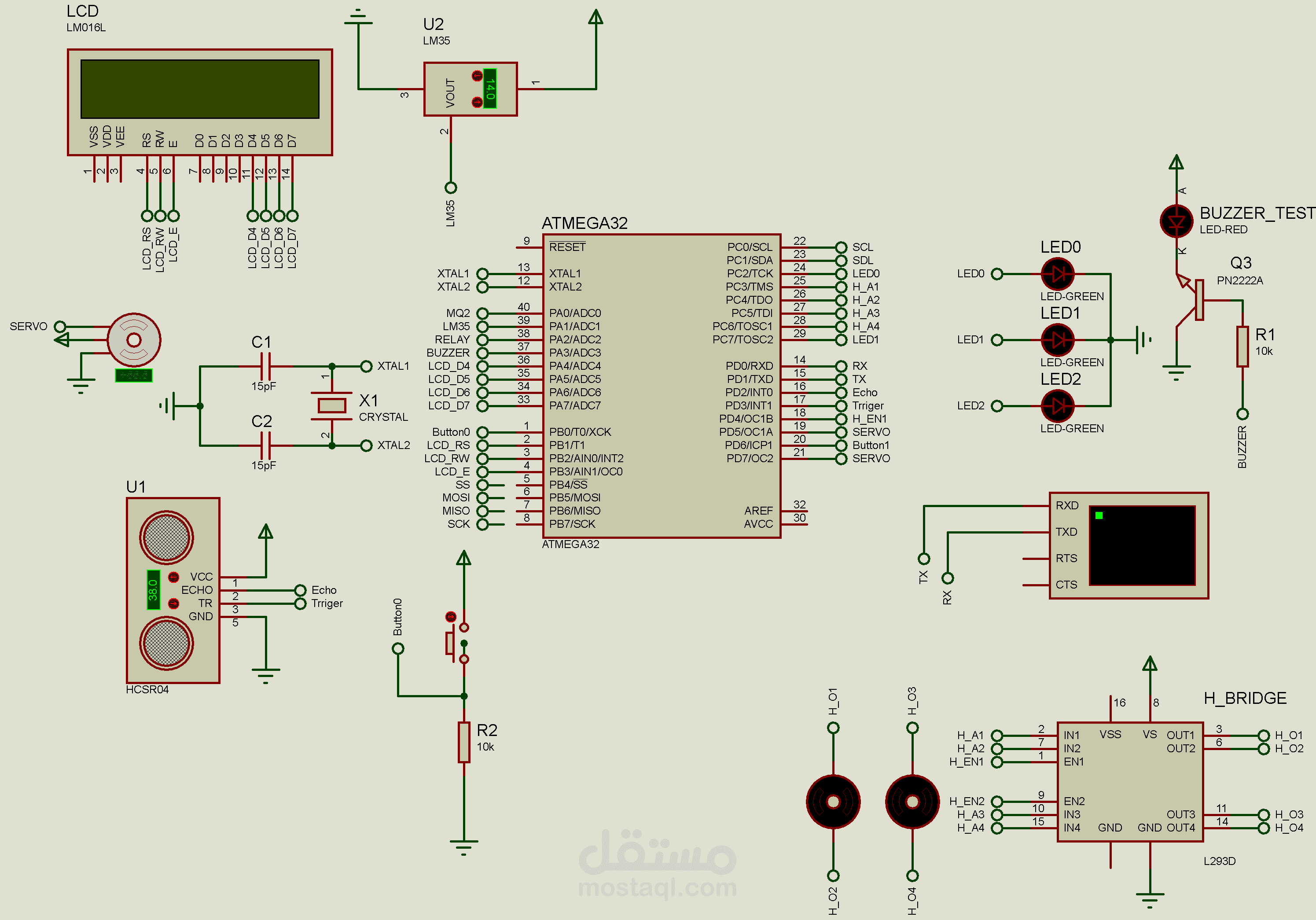 this project aims to implement a self-driving car using ATMEGA32 microchip programmed with high level language (C) that can avoid the obstacles with very fast response