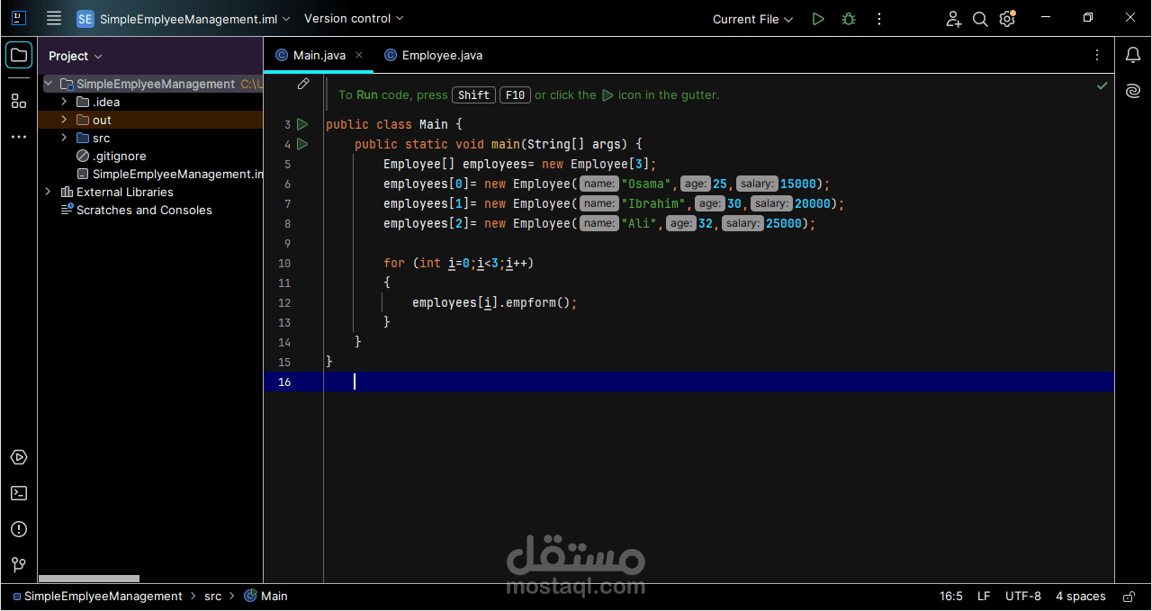 Add a constructor to initialize these fields and a method printDetails() to print employee information.