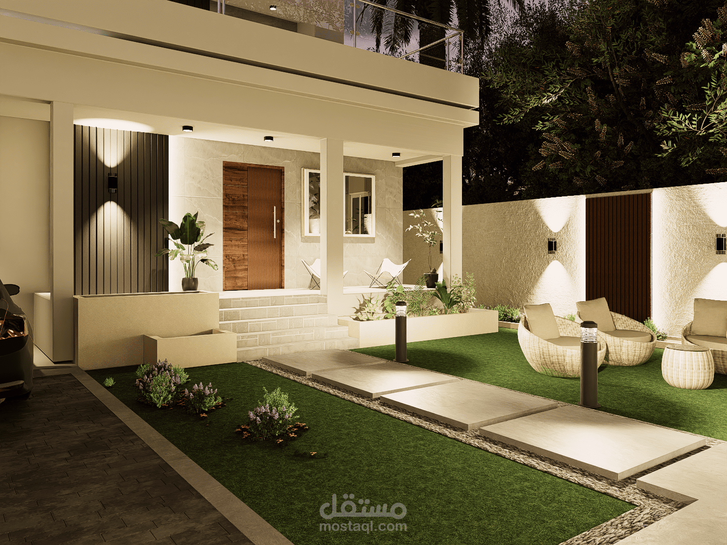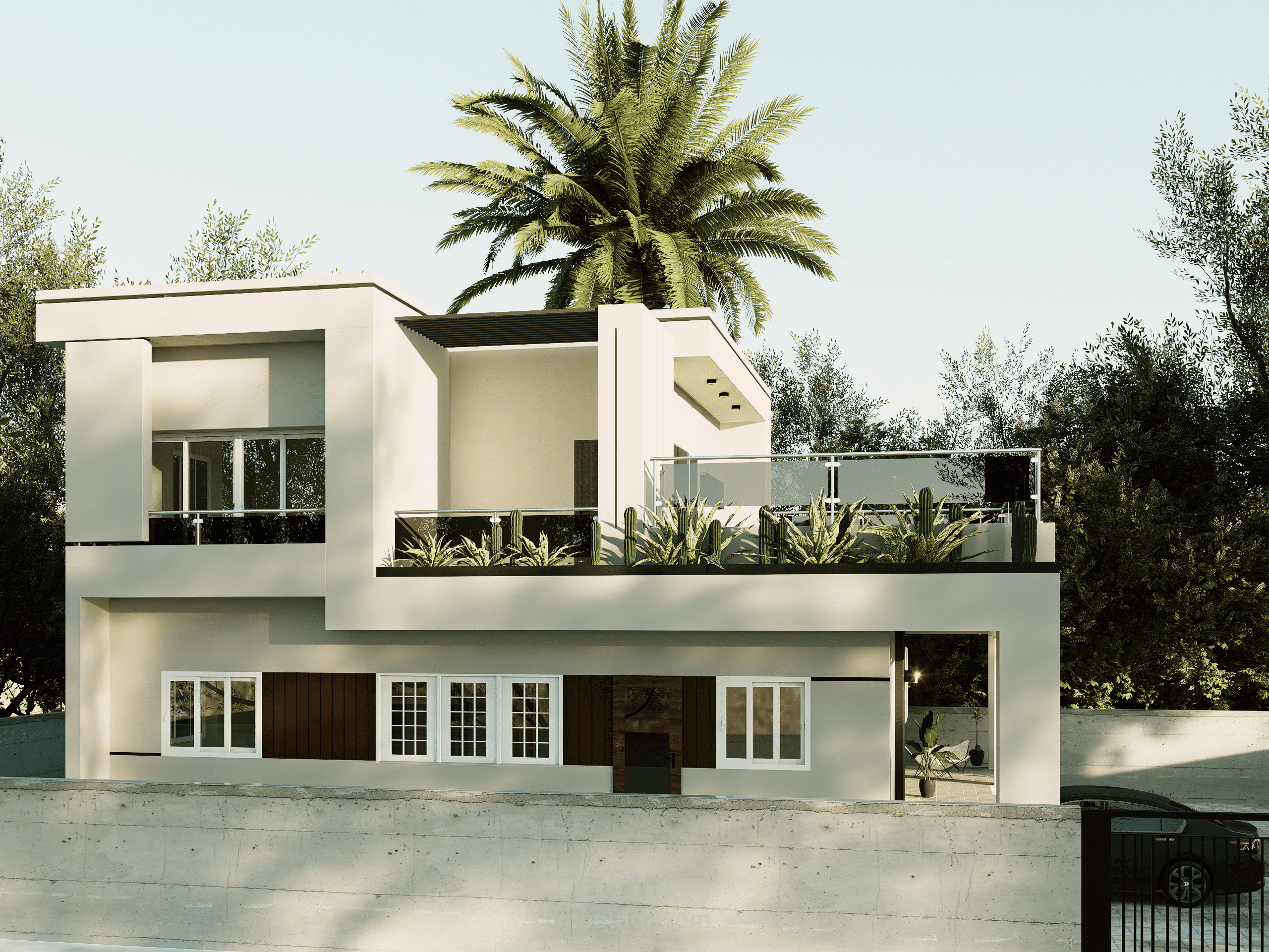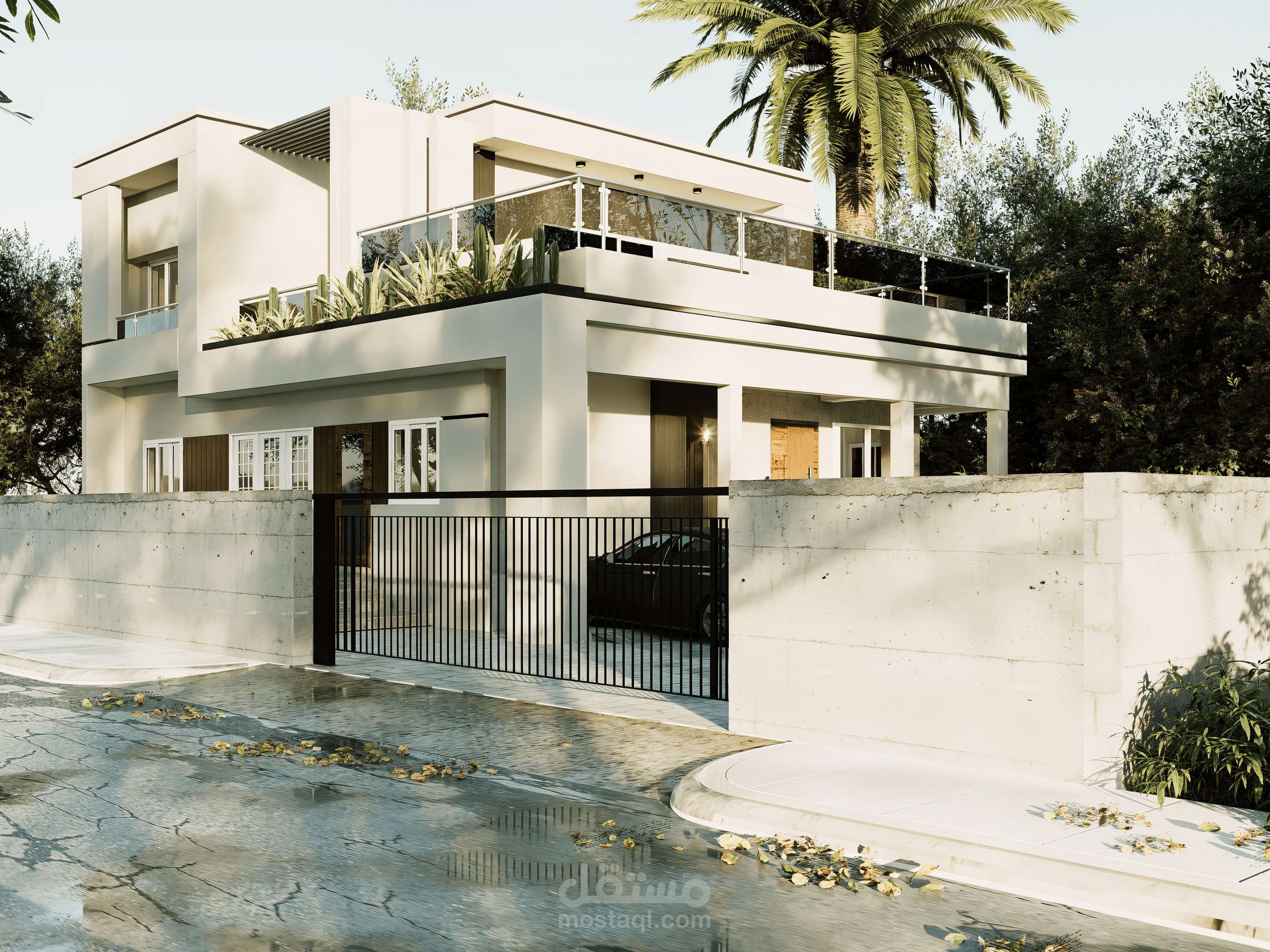 يتميز هذا المشروع بالتصميم الخارجي الكامل لفيلا حديثة، تجمع بين العناصر المعمارية الأنيقة والجمالية. ركز التصميم على خلق توازن متناغم بين الوظيفة والأناقة مع دمج المواد الطبيعية والميزات المعاصرة.
