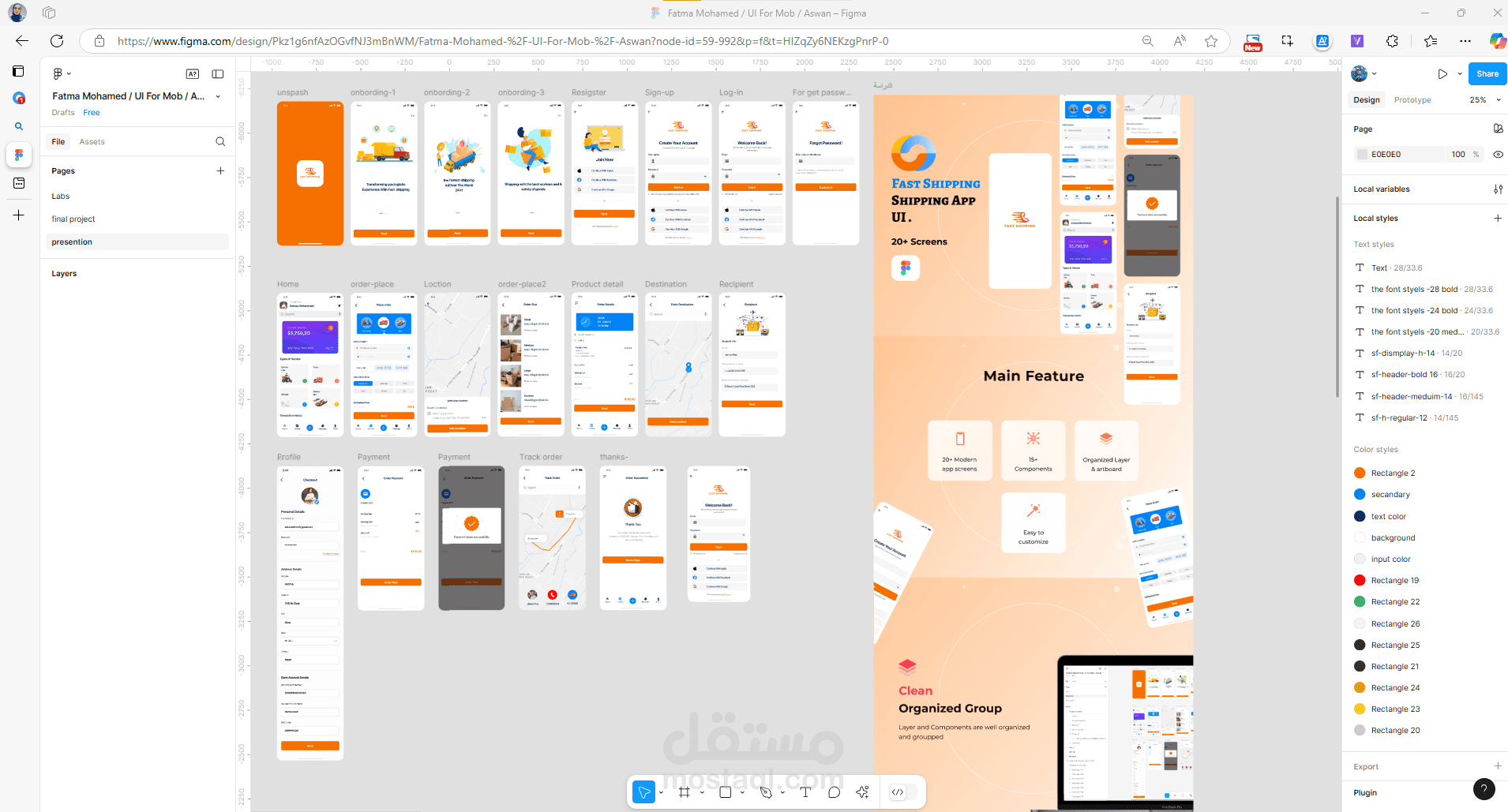 الوصف: تنظيم العناصر والطبقات ضمن التصميمات لضمان سهولة العمل مع فريق التطوير. جميع الملفات مصنفة ومجمعة لتسهيل التعديلات المستقبلية.