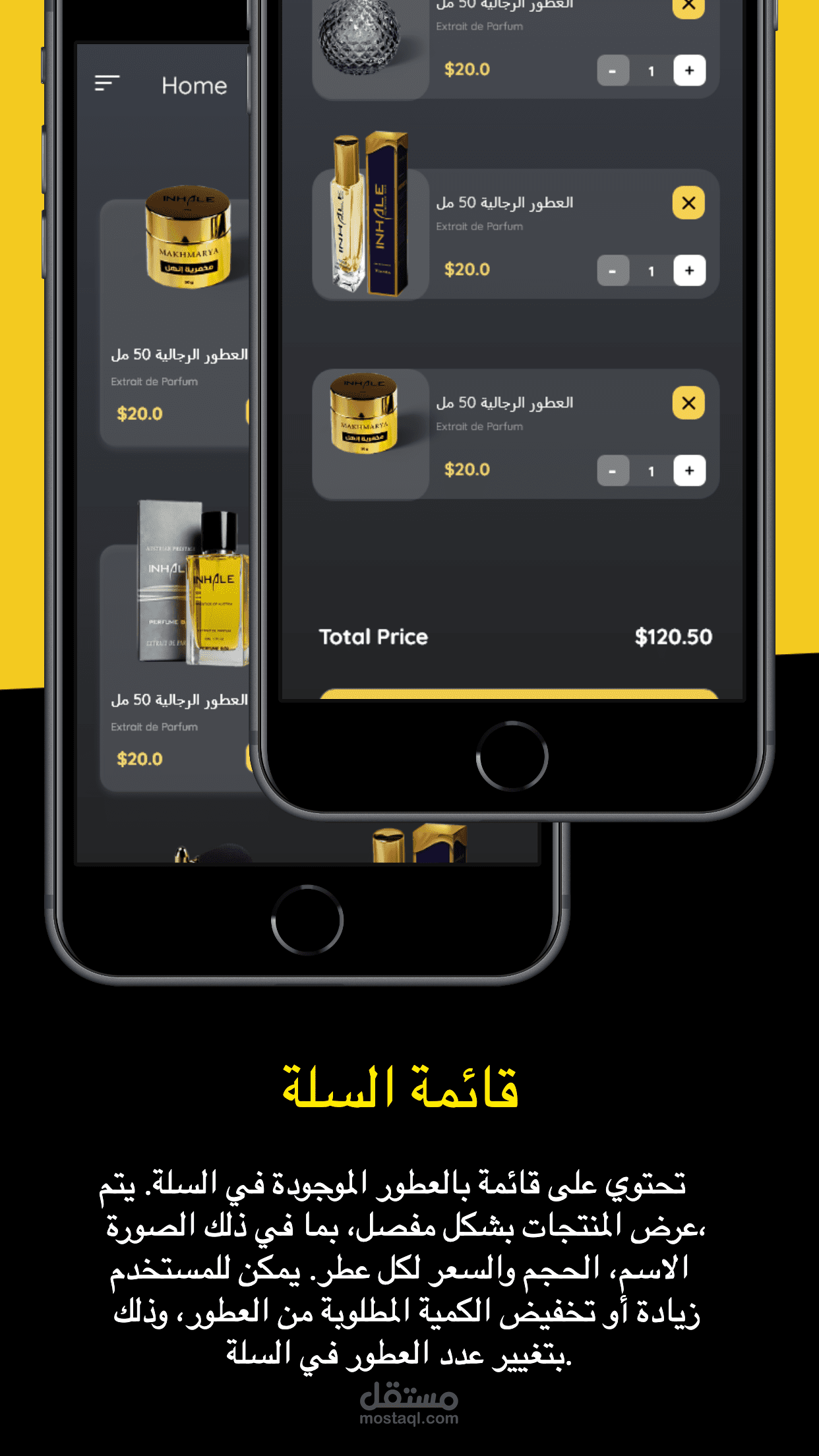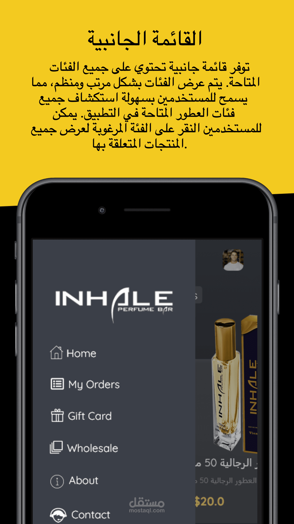 هذا التطبيق، INHALE Perfume Shop، هو منصة تجارة إلكترونية حديثة مصممة لعشاق العطور. فيما يلي وصف احترافي لميزاته: