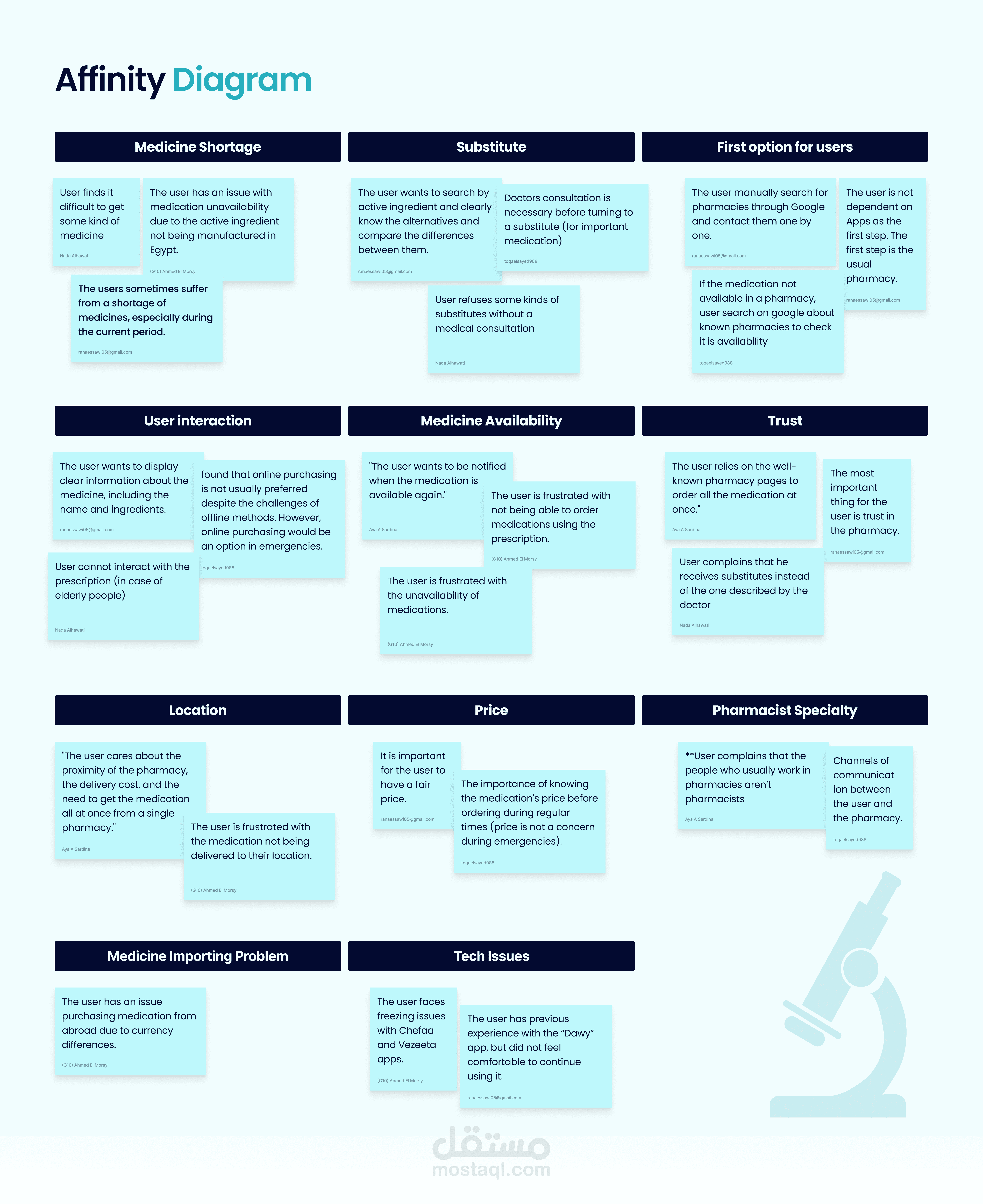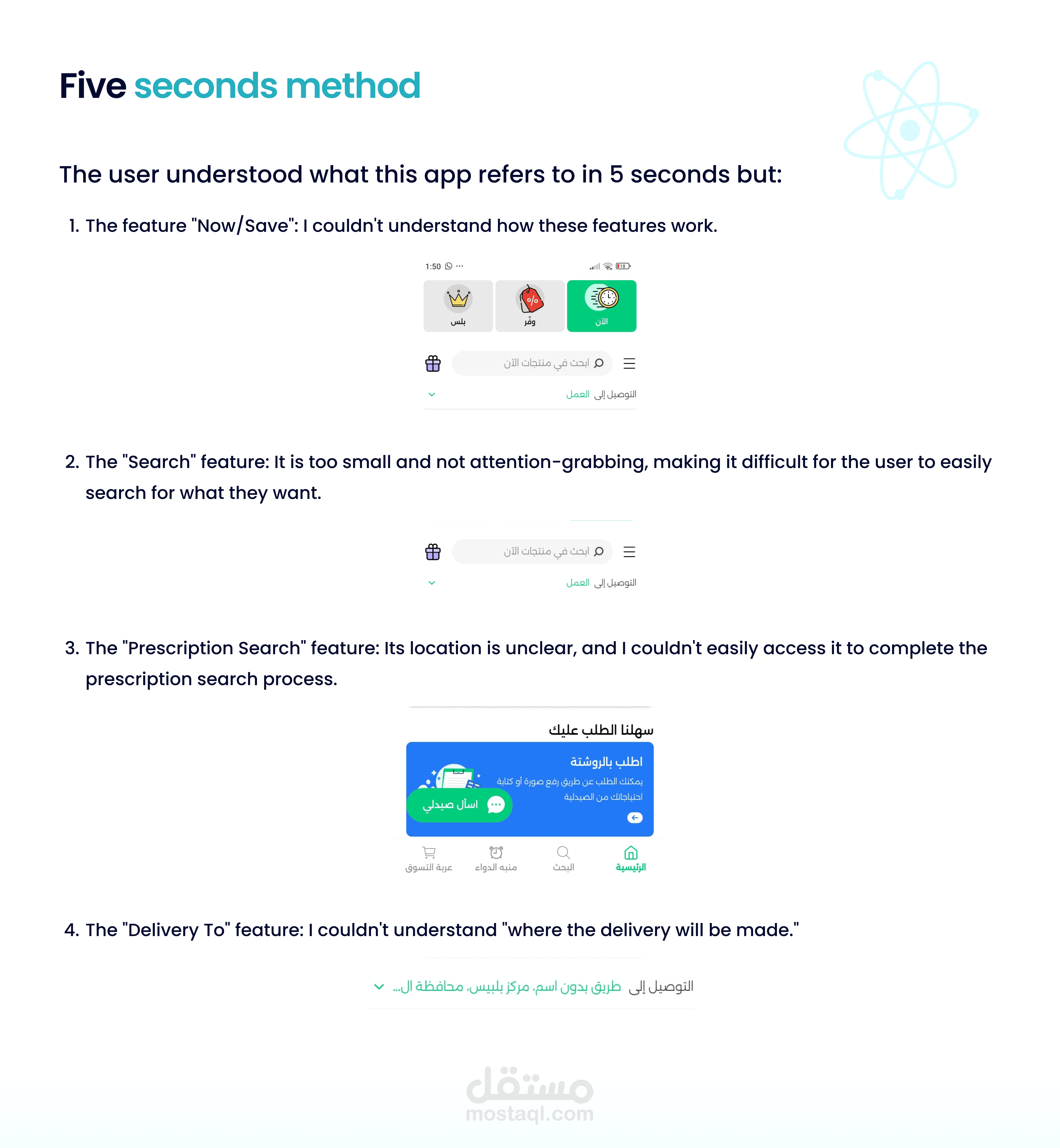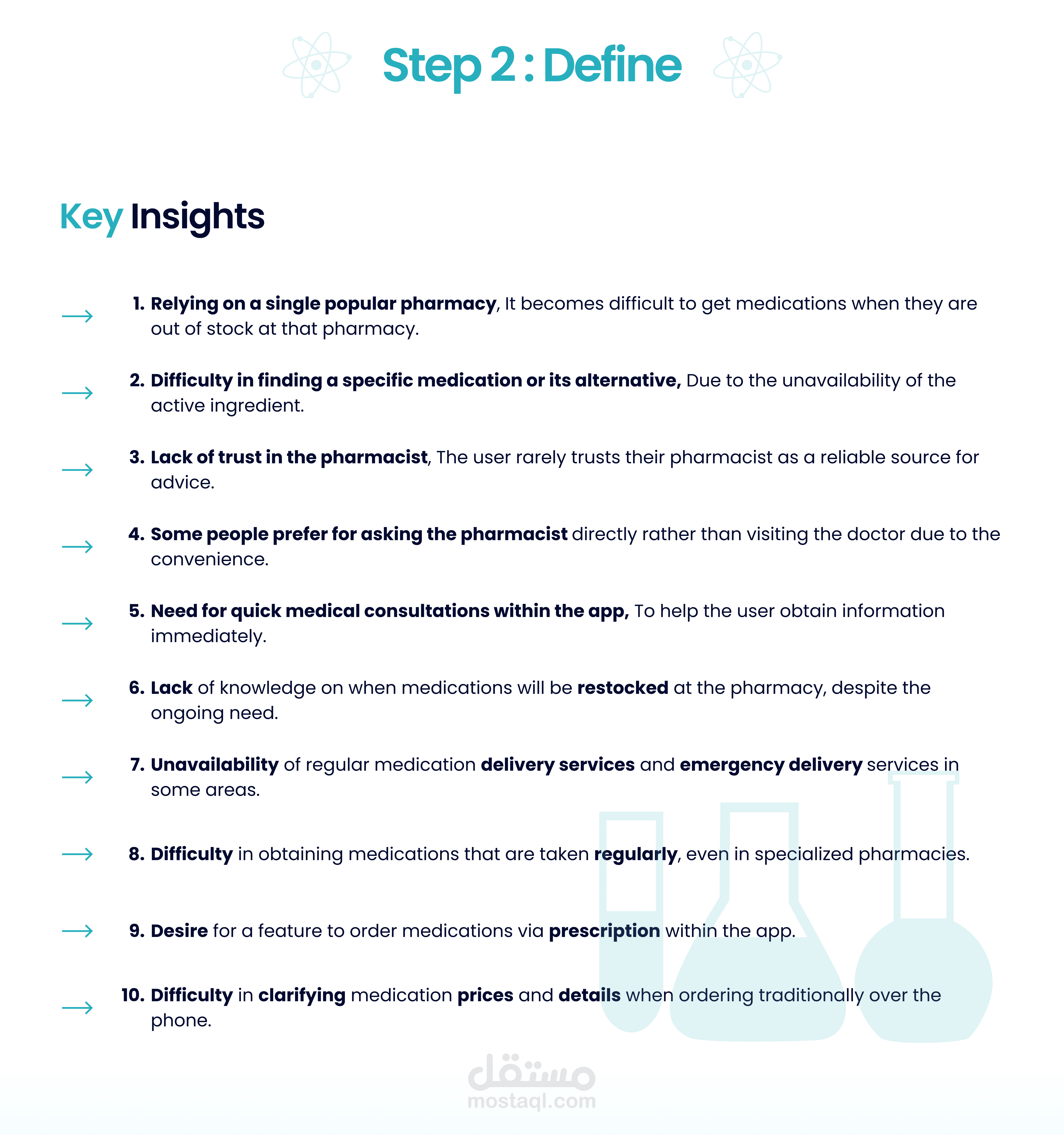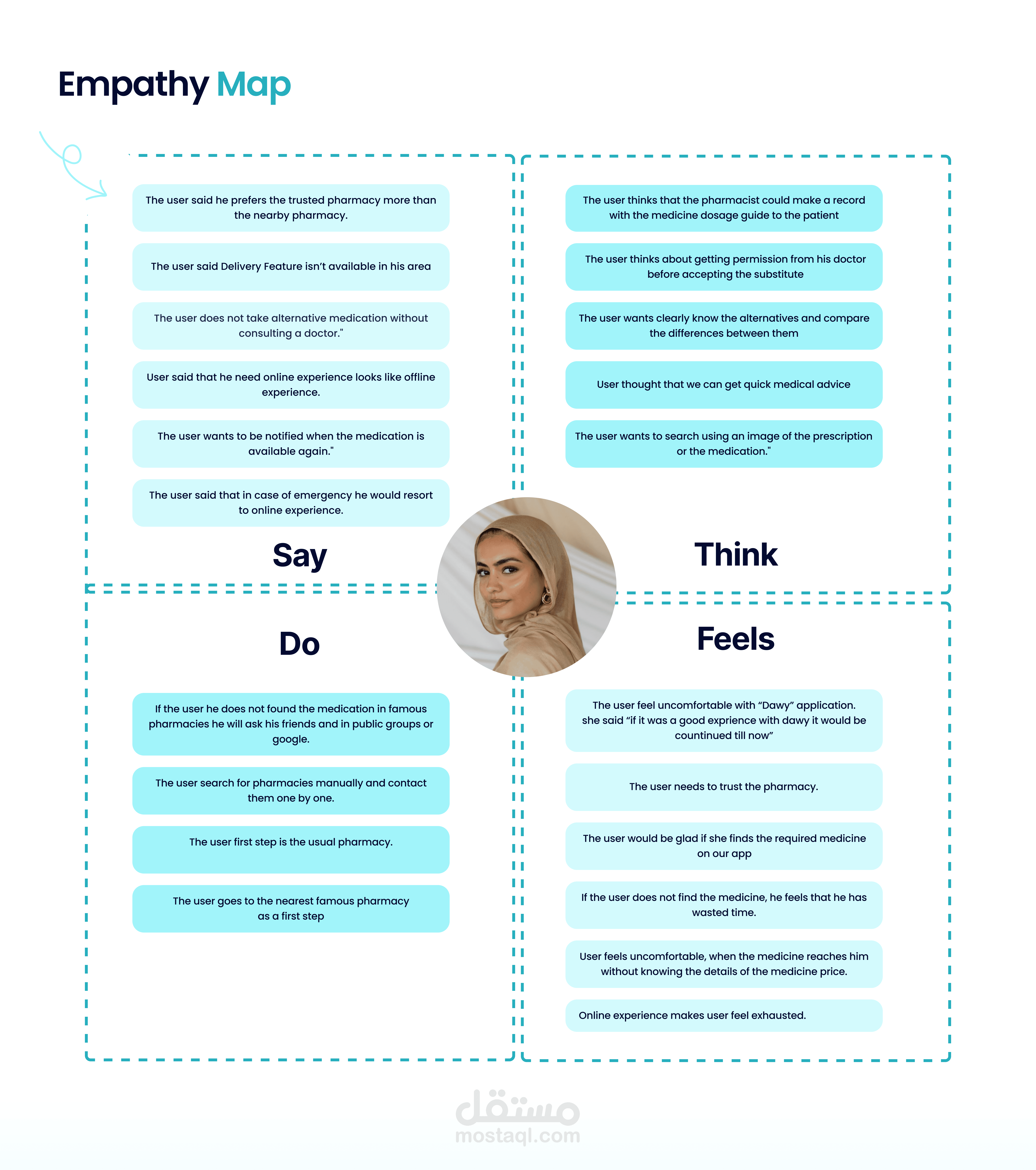 ركز المشروع أيضًا على تطوير تصميم مبدئي للتطبيق من خلال إطارات مبدئية (Low-Fidelity Wireframes) وتحليل المهام لتحسين فعالية التجربة. هذا العمل ساعد في تقديم حل مبتكر يربط بين المستخدمين والصيدليات بطريقة سهلة وسلسة مع تعزيز مهارات الفريق في البحث والتصميم.