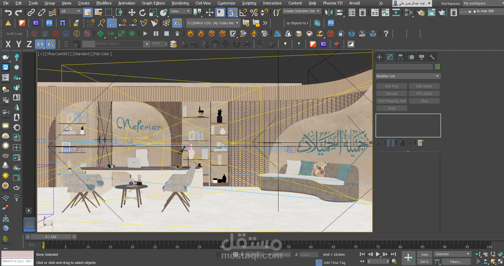 البرامج المستخدمة: تم الاعتماد على برامج 3DsMAX وAutoCAD وPhotoshop لضمان دقة التصميم وجودة المخرجات النهائية.