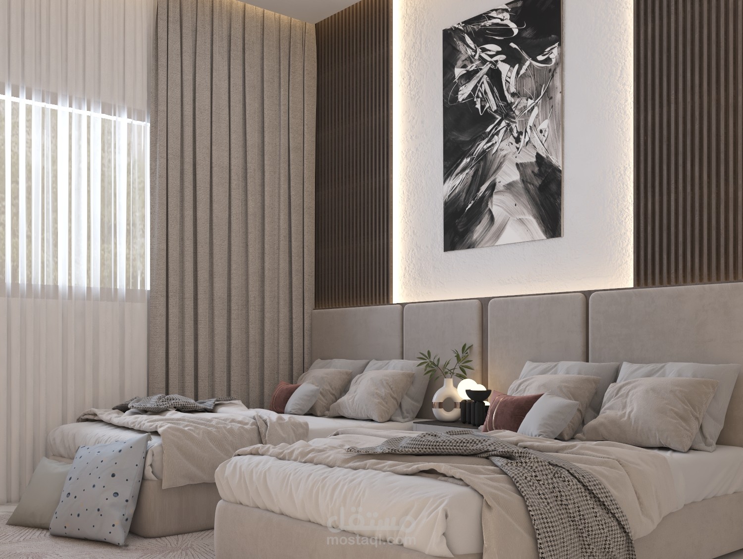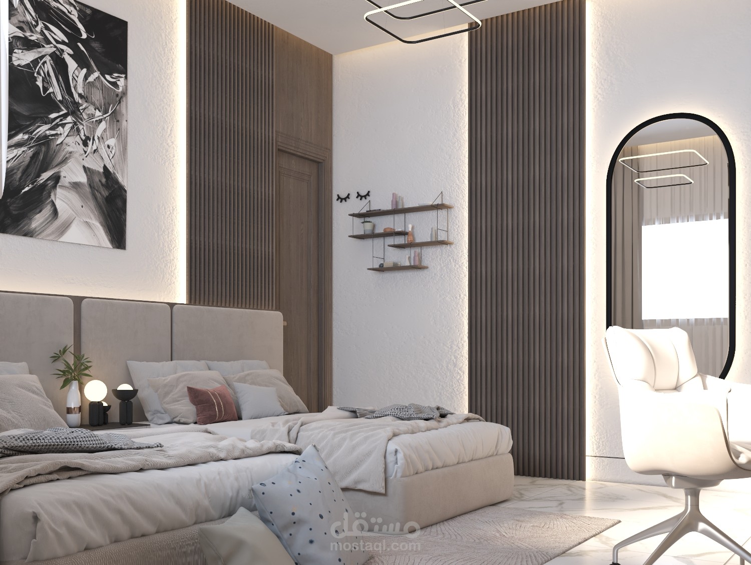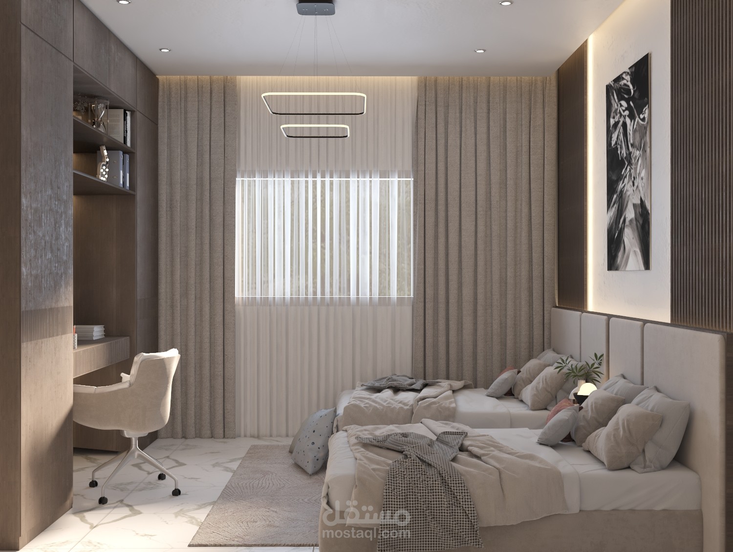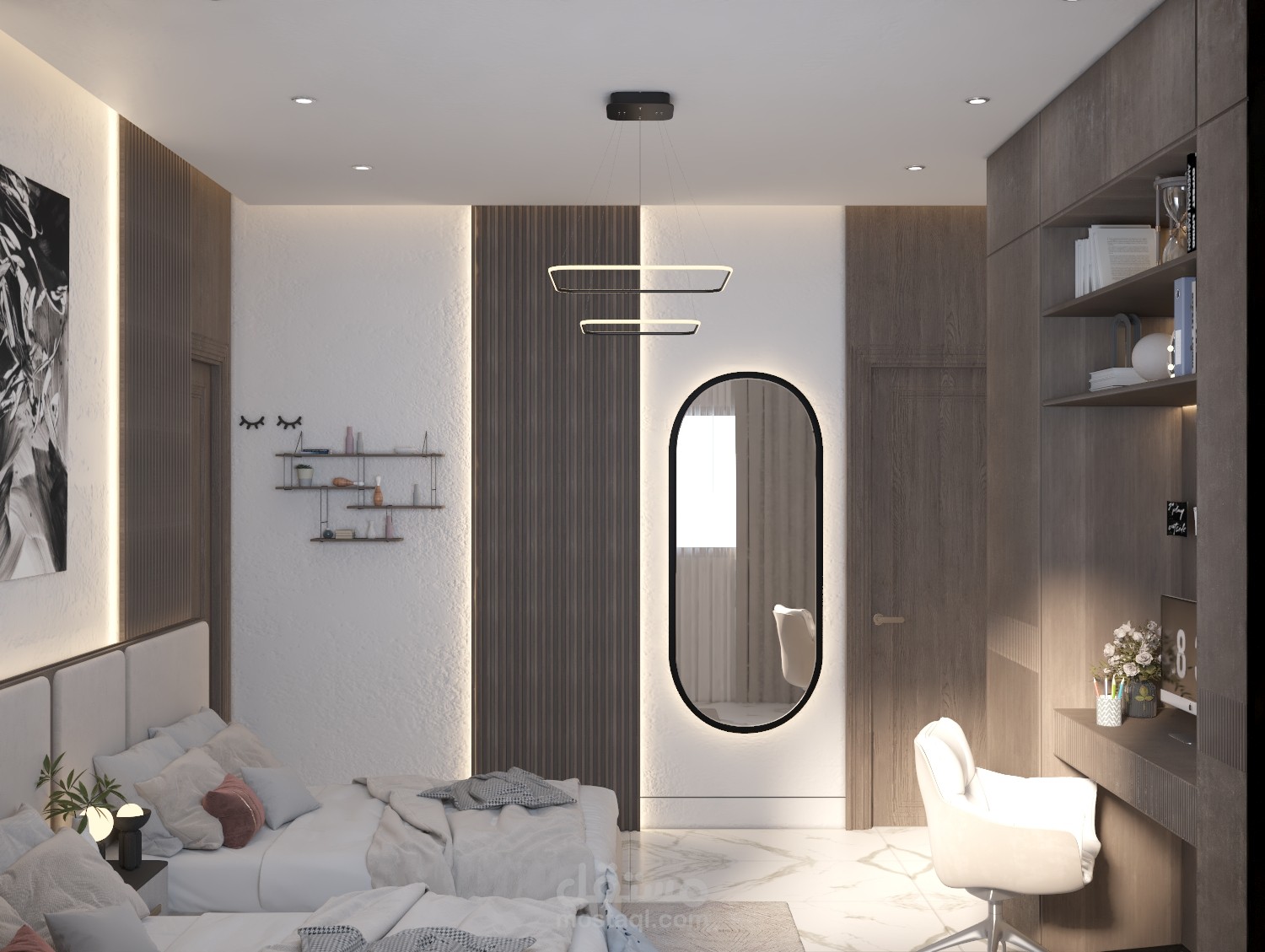 تصميم غرفة نوم لابنتين في أحد الشقق السكنية